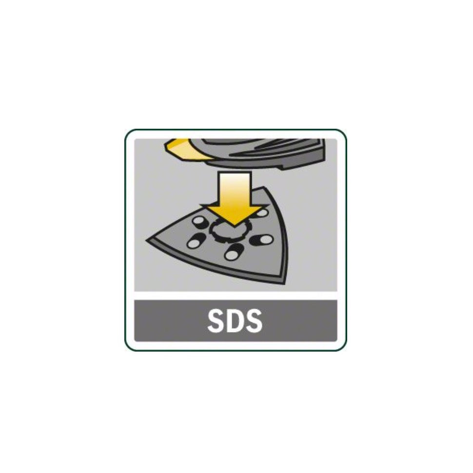 Der PSM 160 A Multischleifer aus dem Hause Bosch ist das Multitalent im Bereich Schleifen und Polieren. Die Kombination aus Schwingschleifer und Deltaschleifer macht ihn zum Multischleifer. Der Schleifer eignet sich für Arbeiten entlang von Kanten, in Ecken oder auf großen Flächen. Das deltaförmige vordere Teil der Schleifplatte ist zudem drehbar. Der Multischleifer verfügt über einen Anschluss zur Staubabsaugung. Der Schleifblattwechsel ist mithilfe von Klettverschluss schnell und bequem gemacht.