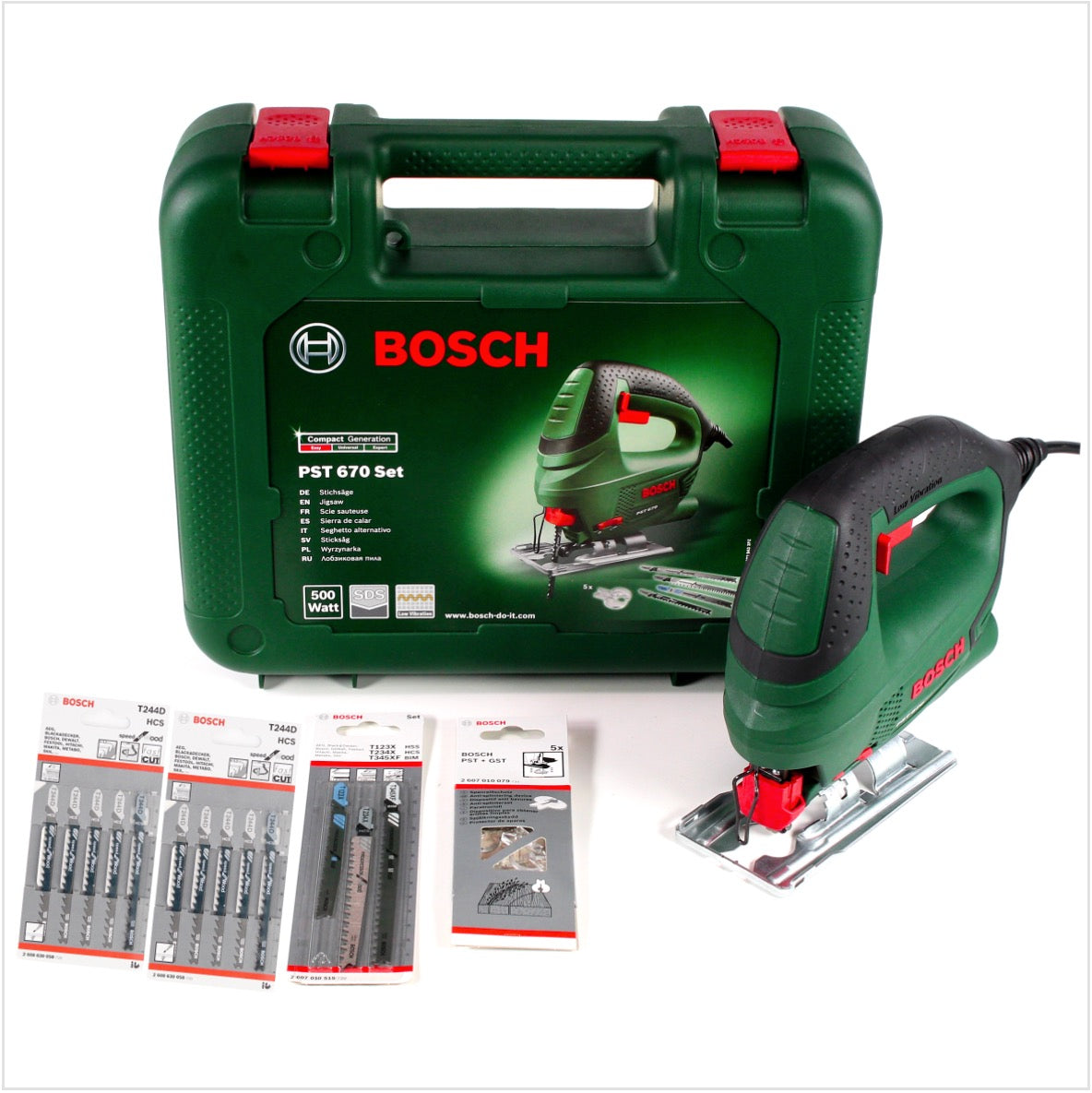 Bosch Heimwerker PST 670 (CT) Stichsäge 500W + 10x Stichsägeblätter T 244 D + 3x Stichsägeblätter + Koffer