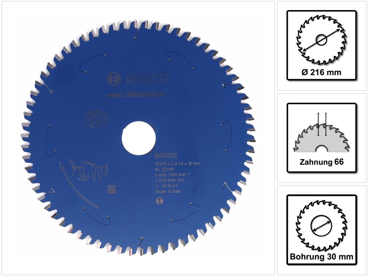 1x Bosch Kreissägeblatt Expert for Aluminium 210x1,4x30mm 66 Zähne