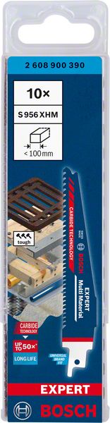 Bosch carbide technology for long-lasting cutting of tough building materials - cuts metal, wood, plastics, composites and prefabricated elements used on construction sites - progressive tooth pitch to cut thin and thick materials alike - suitable for all S-shank reciprocating saws