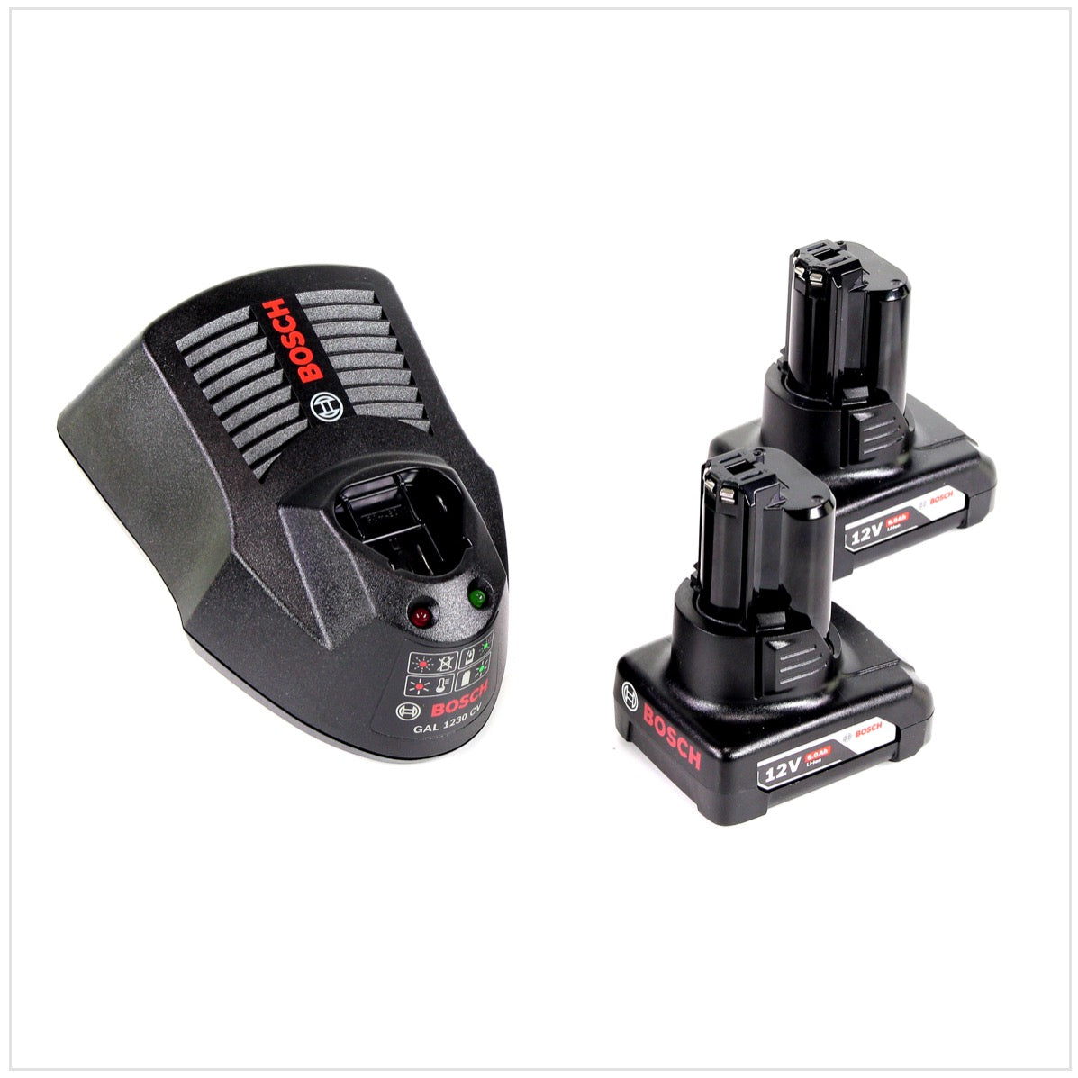 - 2x Bosch GBA 12 V 6.0 Ah batteries