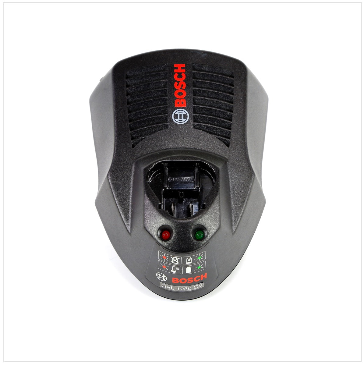 The Bosch GBA 12 V 6.0 Ah is characterised by its very low weight of just 385 grams and yet high performance. Despite the high capacity, the battery is also very compact, but offers a 50% longer runtime compared to a 4.0 Ah 12 V battery from Bosch. The flexible Bosch Power System guarantees universal use of this battery in all 12.0 V and 10.8 V Bosch tools. The Bosch GAL 1230 CV quick battery charger is designed for 12.0 V Li-ion batteries with different battery capacities. The GAL 1230 CV has a short charging time of 30 - 45 minutes on average.