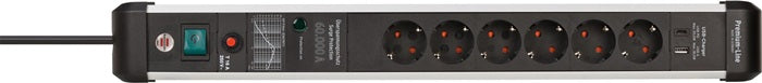 Brennenstuhl socket strip Premium-Protect-Line ( 8001718837 ) 16 A 230 V black/silver 3 m PVC 1.5 mm²