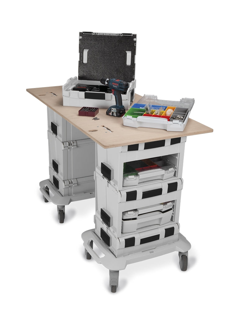 The mobile worktop 1400x700 LB is a lightweight and stable multiplex worktop that is ideal for use in workshops and on construction sites. Thanks to its versatile functionality, it can be firmly locked in place with two L-BOXX towers placed underneath and, in combination with two L-BOXX castors, it becomes a mobile workbench. The worktop offers a generous surface area of 1400 x 700 mm, providing sufficient space for a wide range of work tasks. With a height of 18 mm, it is robust and durable so that it can withstand high loads. Thanks to the high-quality workmanship and innovative design, the worktop is not only functional, but also extremely robust and reliable. It is easy to transport and particularly handy, making it flexible to use. The mobile worktop 1400x700 LB is an indispensable tool for every tradesman and enables efficient working in various areas of application.