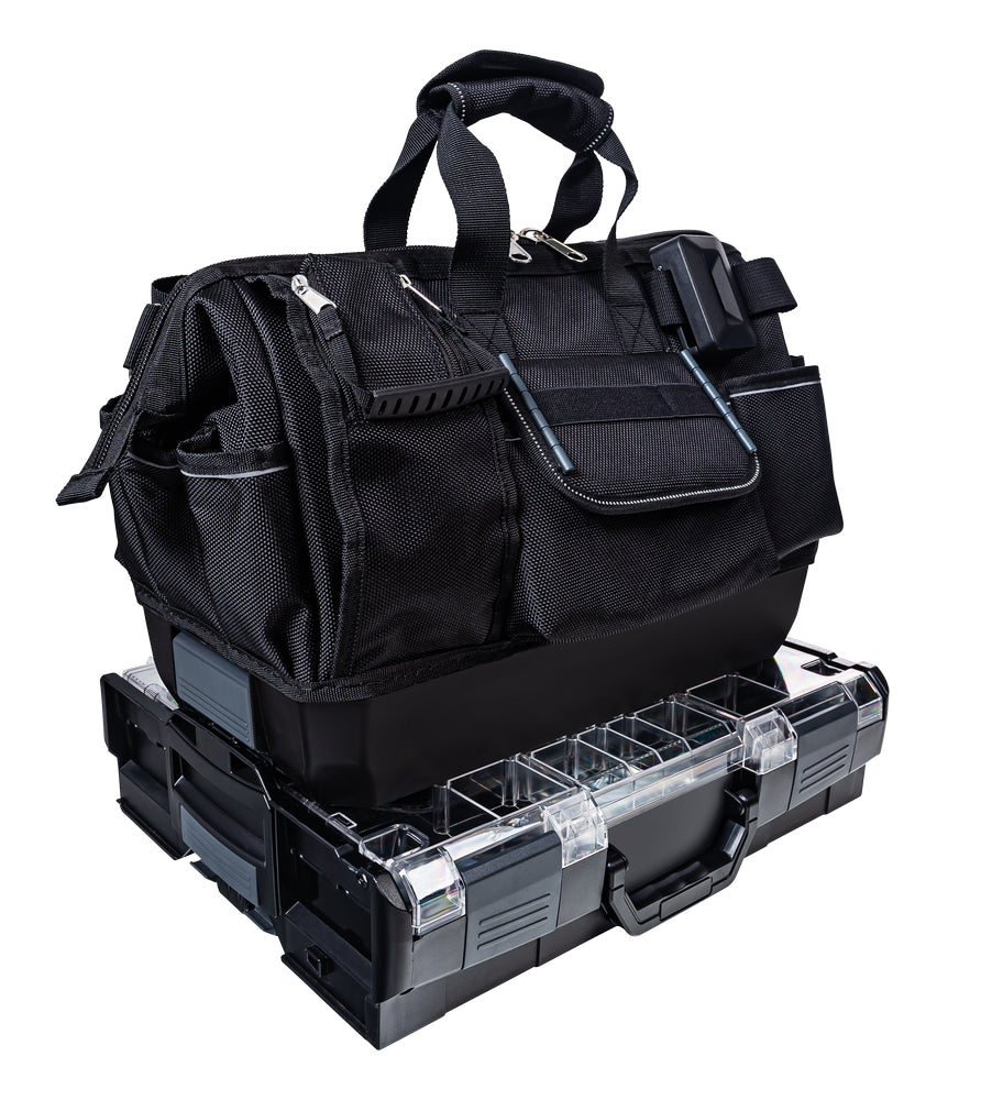 The ProClick Soft Bag M is a closed tool bag in a sporty weekender style that has been specially developed for service professionals in all sectors. It has a practical 2-way zip that makes it quick and easy to open and close. The padded carrying handle and shoulder strap ensure comfortable transport, even with heavy tools. With its generous main compartment and numerous inner and outer compartments, the bag offers sufficient space for a versatile tool kit. Strap and elastic loops allow tools to be securely fastened and organised. There is also an integrated laptop pocket to allow electronic devices to be transported safely. The ProClick Soft Bag M is compatible with the L-BOXX system and has integrated coupling levers to enable easy connection with other L-BOXXes. This ensures flexible and centralised tool storage. This robust tool bag is a real must-have for work and leisure. Its sporty look and high-quality finish make it the ideal companion for service professionals who value functionality and style.