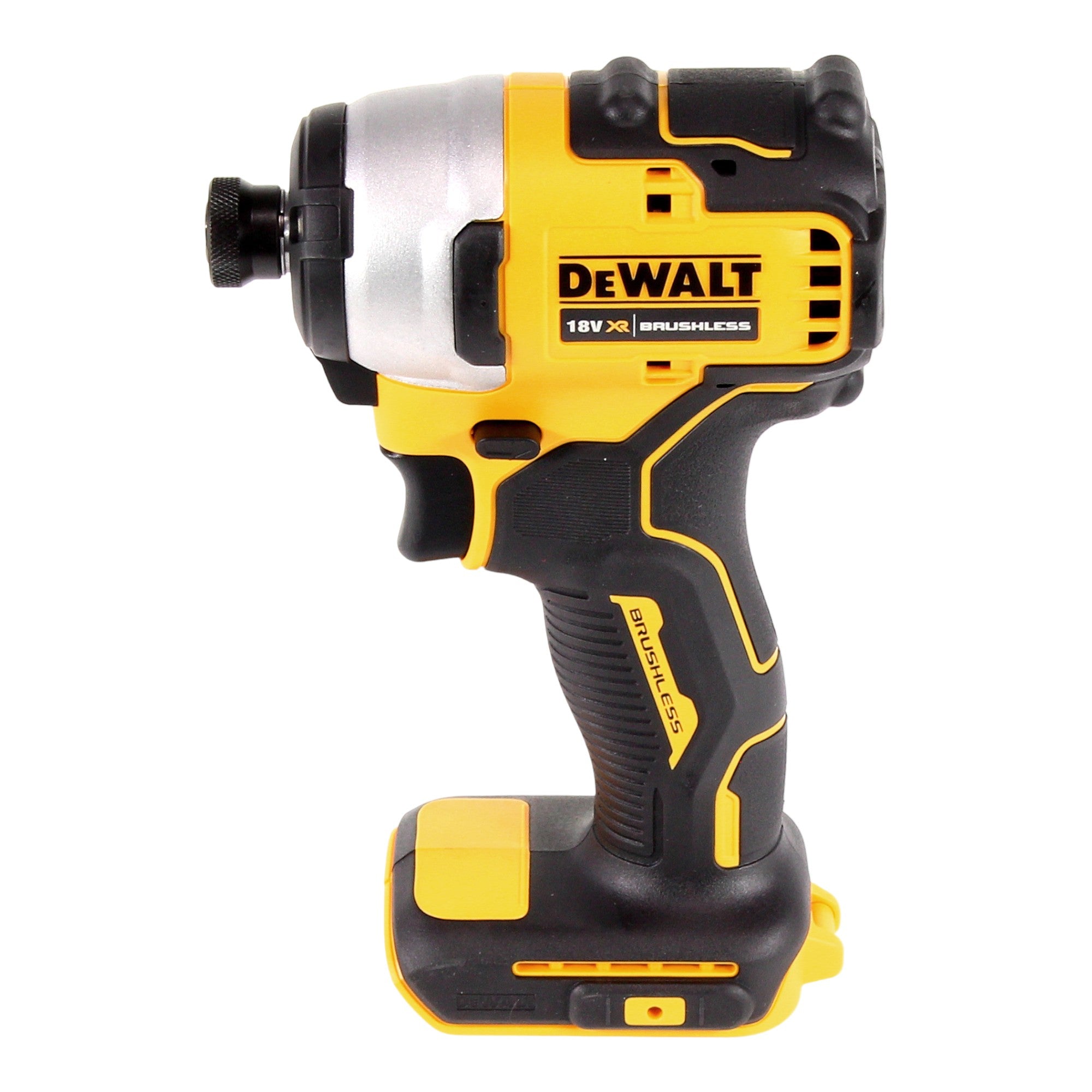 This cordless impact drill from DeWalt belongs to the latest generation of powerful 2-speed cordless impact drills with far more compact dimensions and lower weight than the comparable predecessor model. It also has a longer service life as it has integrated the innovative brushless motor technology. The optimised 2-speed full metal gearbox ensures perfect power transmission. The 15-stage torque module with safe and reliable cut-off torque ensures precise screwdriving in all settings. The impact electronics are easy to adjust for exact drilling and precise screwdriving. Problem-free long-term use is possible thanks to the safety electronics (permanent monitoring of battery temperature, current drain and discharge protection). The robust 13 mm quick-action drill chuck made of solid metal has centred clamping jaws and easy handling thanks to the automatic spindle lock. The tool is also easy to use thanks to its extremely compact design with an overall length of just 17.5 cm, very lightweight construction and ergonomic rubberised grip areas. A powerful LED light with very high luminosity ensures problem-free work in all lighting conditions. There is also a robust metal belt hook. The DeWalt DCF 809 cordless impact wrench is extremely powerful despite its very small size. The very high torque of up to 190 Nm and the brushless motor technology guarantee precise, fatigue-free and energy-efficient work. The well-balanced design and ergonomic handle offer maximum comfort when working.