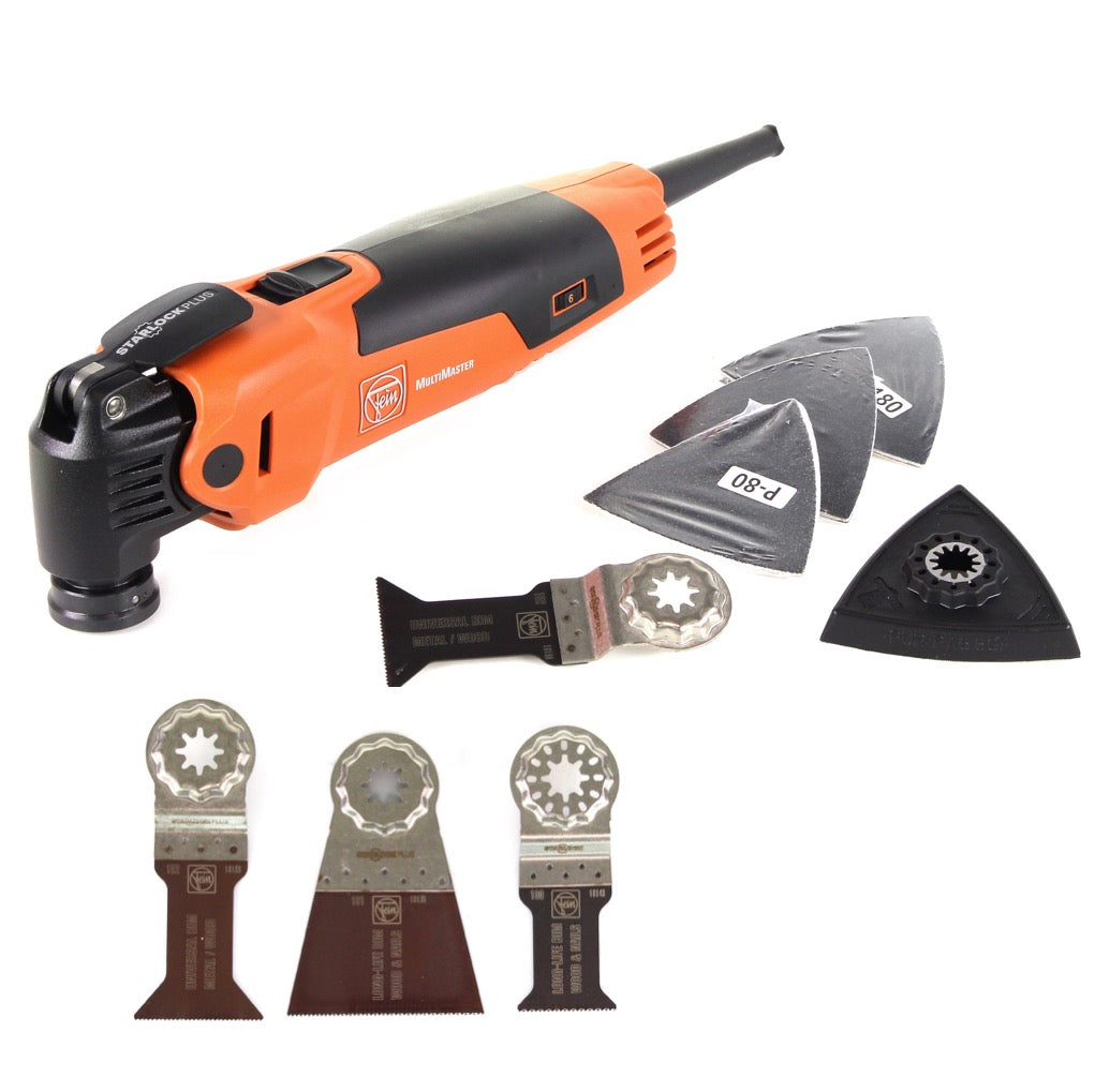 FEIN FMM 350 QSL MultiMaster Oszillierer XS 350 W + Schleifscheiben + E-Cut Sägeblatt Combo SLP inkl. 3 Sägeblättern