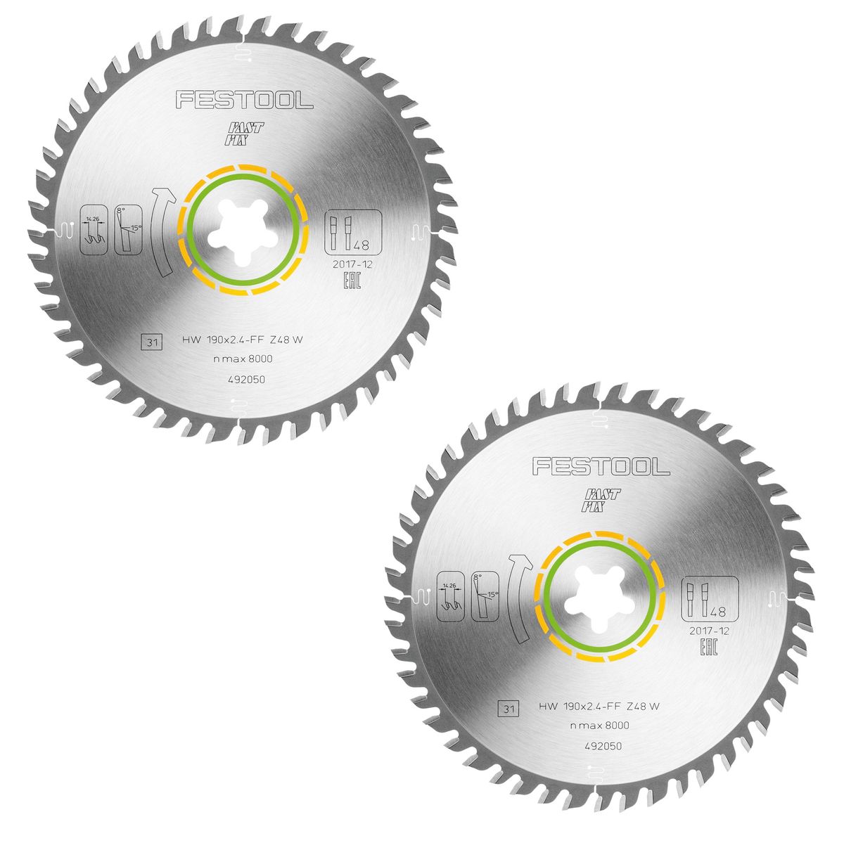 Festool 2x fine tooth circular saw blade HW 190 x 2.4 mm xFF W48 190 mm 48 teeth FastFix ( 2x 492050 )