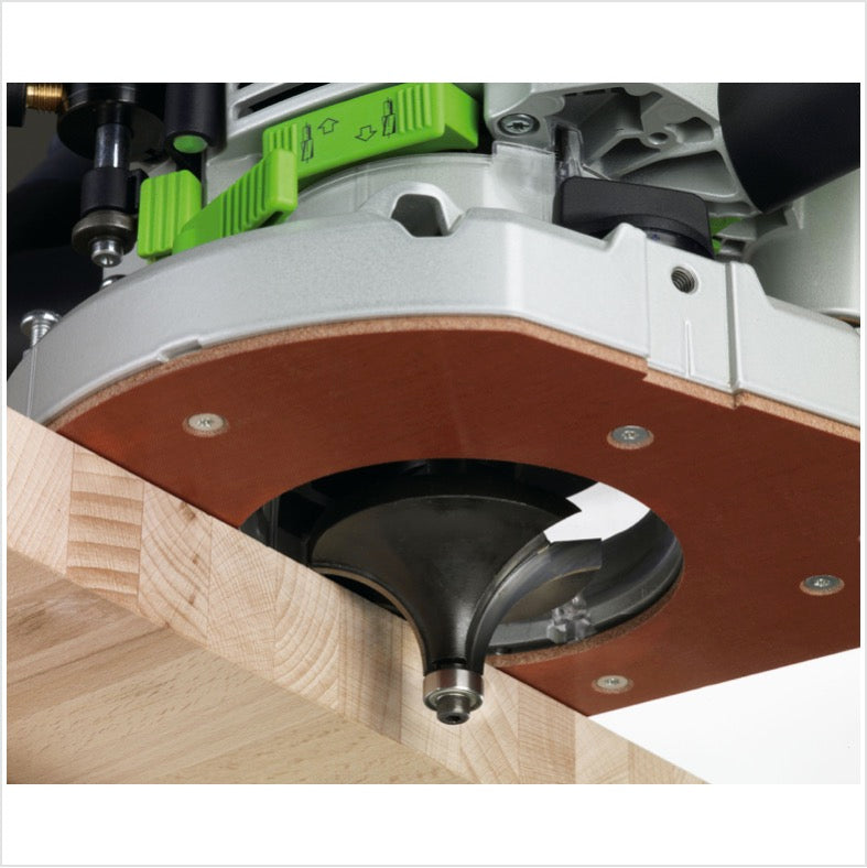 The Festool OF 2200 EB Plus router impresses with its MMC Electronic Multi-Material-Control, which makes it possible to work with the right material, while the temperature monitoring and the associated speed control and quick brake guarantee safe working. The 2200 watt motor produces a powerful pull, even with hard materials, resulting in clean and fast work progress. The double guide column clamping and the routing depth adjustment, which is accurate to 1/10 mm, also contribute to accuracy. Thanks to the tool-free copying ring and soleplate change, as well as the router bit change system with rocker and ratchet principle, the router is ready in seconds for all types of work, whether rebating, grooving or profiling. Large cut-outs, circles or arches can also be cut and routed precisely with the OF 2200 using the multi-milling template.