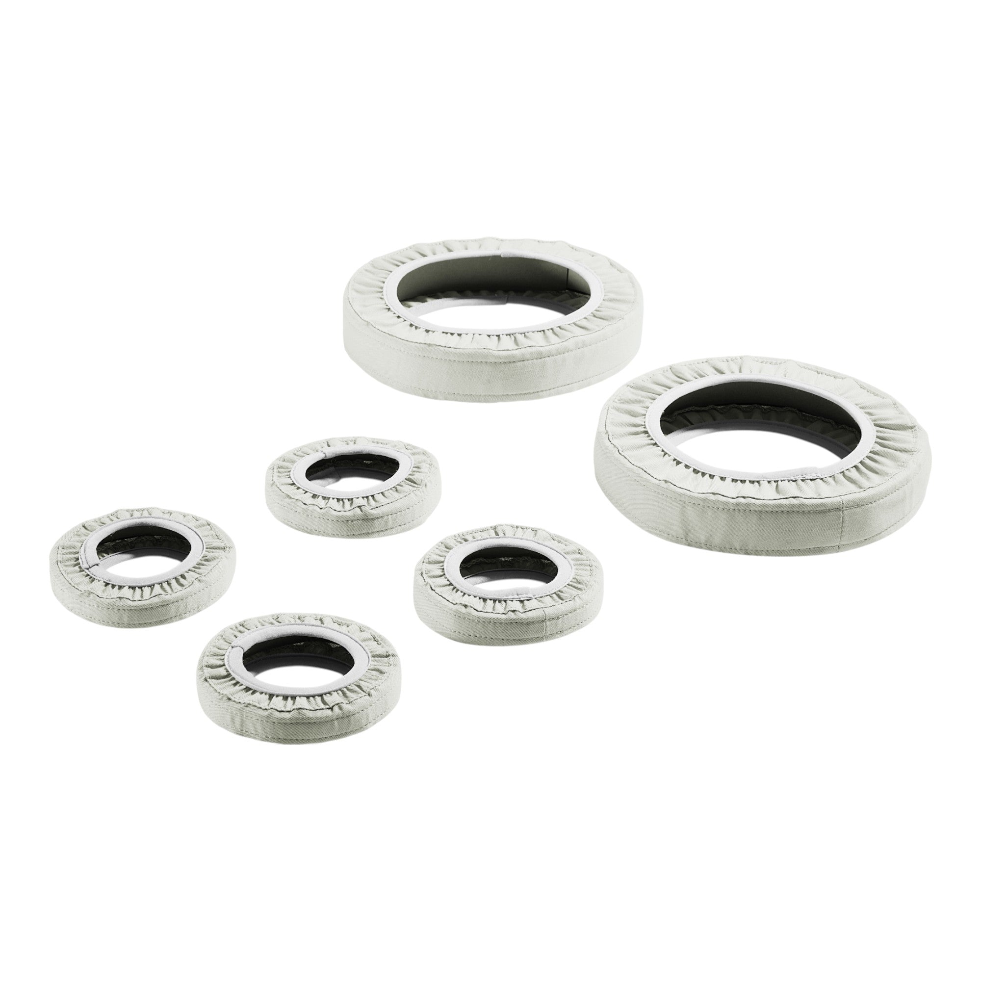 The Festool RD-CT 26-48 wheel lifters are the ideal solution for reliably protecting sensitive floor coverings such as parquet, laminate or vinyl from scratches while maintaining the full functionality of your vacuum cleaner. Made from robust, abrasion-free textile material, they offer a particularly gentle contact surface that leaves no marks and impresses with its durability in everyday use. Installation is extremely simple and time-saving: all six wheel covers can be fitted in no time at all and removed just as quickly if necessary. Even after intensive use, the covers remain easy to clean as they are washable and therefore hygienic at all times. Despite the additional protection, your vacuum cleaner retains its full manoeuvrability and mobility, allowing you to work efficiently and flexibly even on sensitive floors.