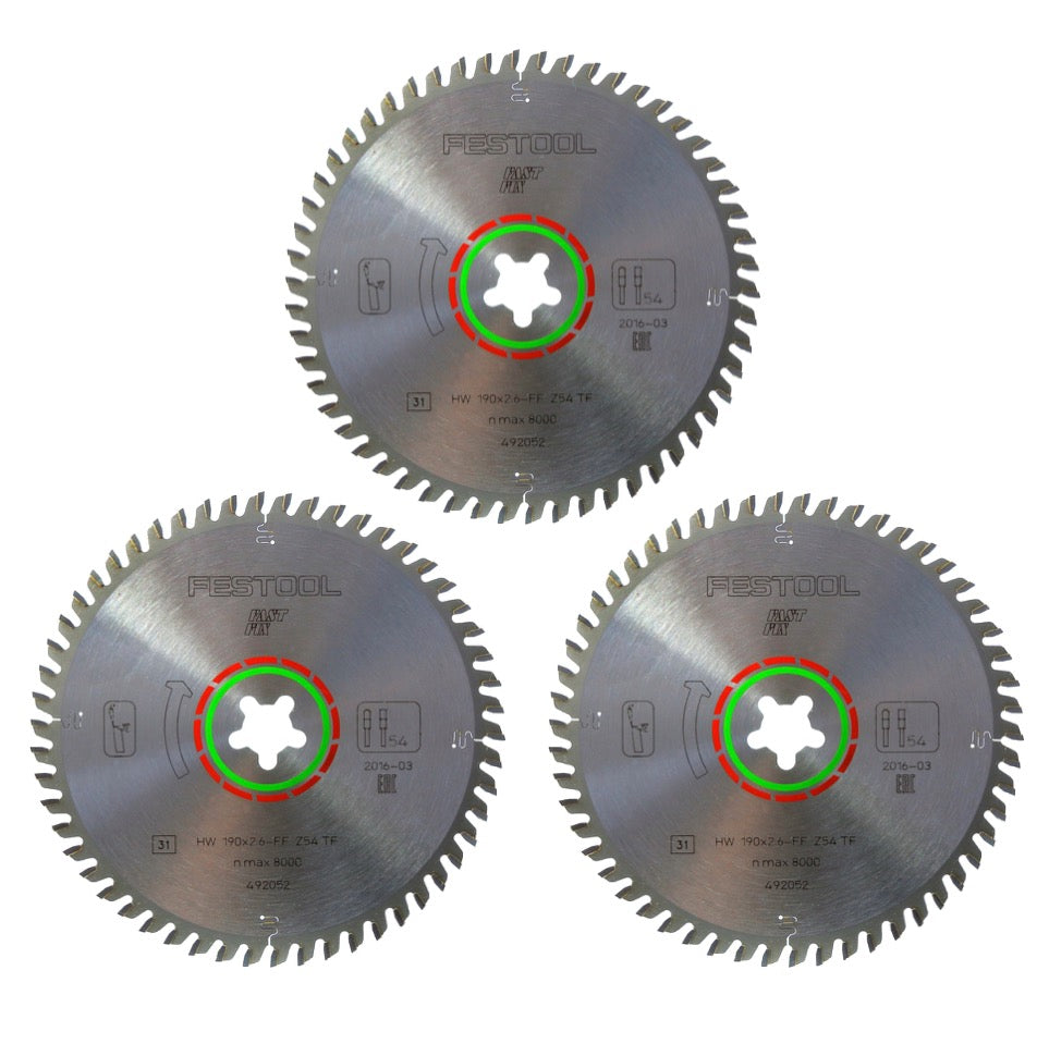 Festool Spezial Kreissägeblatt Set 3x HW 190 x 2,6 FF Fast Fix TF54 190 mm ( 3x 492052 ) 54 Zähne