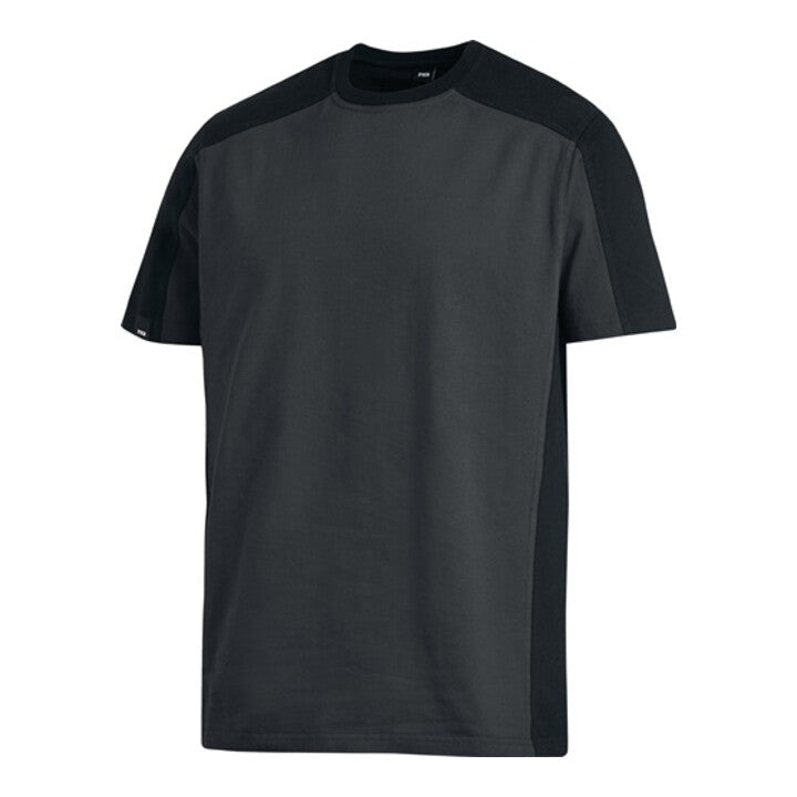 100% ring-spun cotton, approx. 210 g/m² - super combed - single jersey - round neckline with elastane - double seams at neckline, sleeves and hem - reinforced with neck tape and double layer in half-moon shape - no shoulder seam also available in sizes XS-S and 3XL-5XL on request