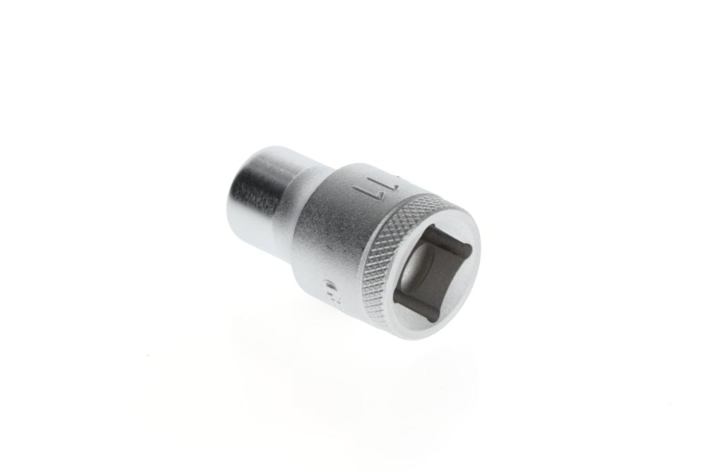 Der GEDORE 19 11 Steckschlüsseleinsatz mit einer Schlüsselweite von 11 mm und einem 1/2-Zoll-Innenvierkantantrieb entspricht den Normen DIN 3124 und ISO 2725-1. Der Antrieb folgt der DIN 3120 - C 12,5 sowie ISO 1174 und ist mit einer Kugelfangrille ausgestattet. Das Werkzeug ist für die manuelle Betätigung vorgesehen und besitzt eine griffige Kreuzrändelung für besseren Halt. Gefertigt ist es aus GEDORE Vanadium-Stahl 31CrV3, die Oberfläche ist geschliffen und verchromt.
