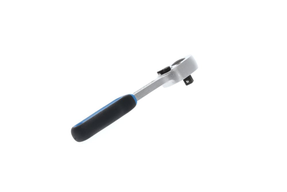 6.3 mm (1/4″) square drive - CV steel - with 2-component handle - chrome-plated - ratchet lock in centre position - reverse swivel angle 15° 24 teeth DIN 3122 / ISO 3315