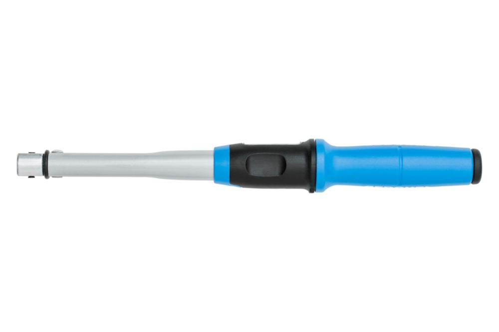 for insert tools - adjustable torque spanner with internal rectangular socket - for controlled clockwise and anti-clockwise tightening - with pin lock for interchangeable insert tools - incl. test certificate test certificate in accordance with DIN EN ISO 6789-2:2017, traceable to national standards - articulated mechanism with sliding roller guarantees a tactile and audible release signal - adjusted to a release accuracy of ± 3 % tolerance of the set scale value - robust, painted tubular steel construction, with galvanised mount and glass fibre reinforced plastic parts - double scale Nm and lbf.ft. protected under a viewing window with magnifying glass effect - additional micrometre scale with Nm graduation (see "Vernier" table for details) - ergonomic plastic handle - handle with notch in the centre of the handle as a calibration aid