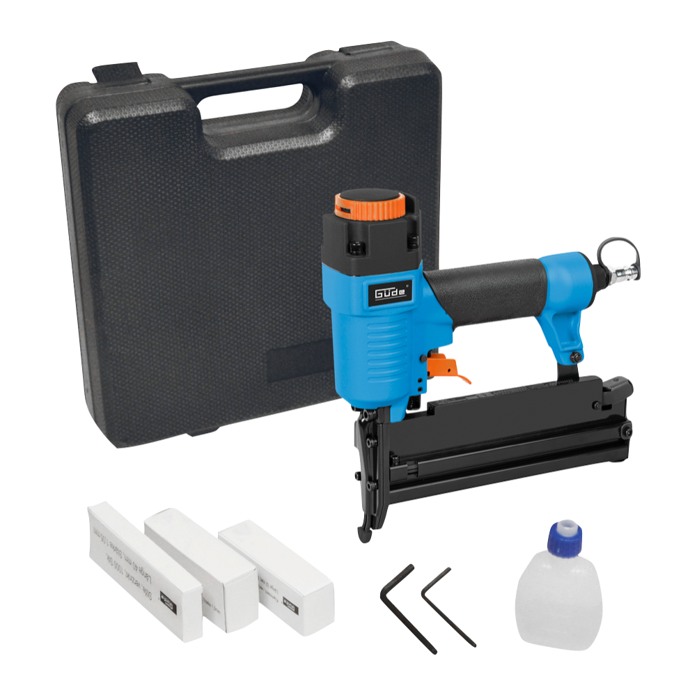 Güde Druckluft Klammergerät / Nagler 3 in 1 20 - 40 mm 4 - 7,5 bar + 800 tlg. Nagel / Klammer Set + Koffer ( 40221 )