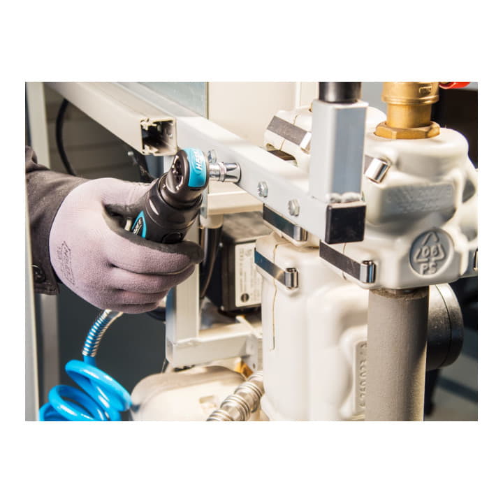 for manual retightening with torques > 60 Nm - completely closed head prevents chips from entering - low-vibration - cold-insulating handle - clockwise/anticlockwise rotation: single-stage - lever valve