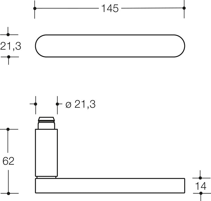 in H technology with roses to DIN 18255 and DIN EN 1906 made of stainless steel, satin finish, consisting of: Lever handle model 271X... in L-shape made of stainless steel (1.4301), lug diameter 21.3 mm, with lug guide and locking groove, with grub screw M5 as additional fixing of the lever handle with the square spindle for optimum force transmission into the door leaf. Installation by simply snapping the lever handle into the pre-mounted bottom parts on the door. The latching mechanism can be released again using a disassembly spanner. Rosettes 305.21X... and 306.23X..., substructure 305.21X... in plastic/steel composite construction with black zinc/nickel surface for optimum corrosion protection, integrated hold-open module with spring support, can be used DIN left and DIN right, to support the lock for a longer service life. Fixed pivot bearing of the lever handle with automatically engaging all-round locking and 5 mm bearing point as a maintenance-free plain bearing with elastic compensation area to eliminate possible installation inaccuracies. Concealed, loosening-proof screw fitting with M5 stainless steel screw and sleeve screw combination as well as support plugs recessed into the door leaf. Rose cover cap, round, made of stainless steel (1.4301), diameter 55 mm, 10.5 mm high, 1.5 mm wall thickness. Designed and tested for the contract sector, usage category to DIN EN 1906 - Class 4 fitting, with square spindle 8 mm, for door thickness 38-48 mm - lever handle length 150 mm - Zimmergarnitur