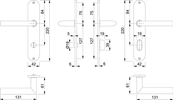 Long plate fitting tested to DIN EN 1906 (usage category class 3) - Door handles with quick pin connection (with 8 mm solid pin) for door thickness 35-45 mm - Visible screw-fixed plates Distance 78 mm - Bearing: Door handles loose, maintenance-free plain bearings