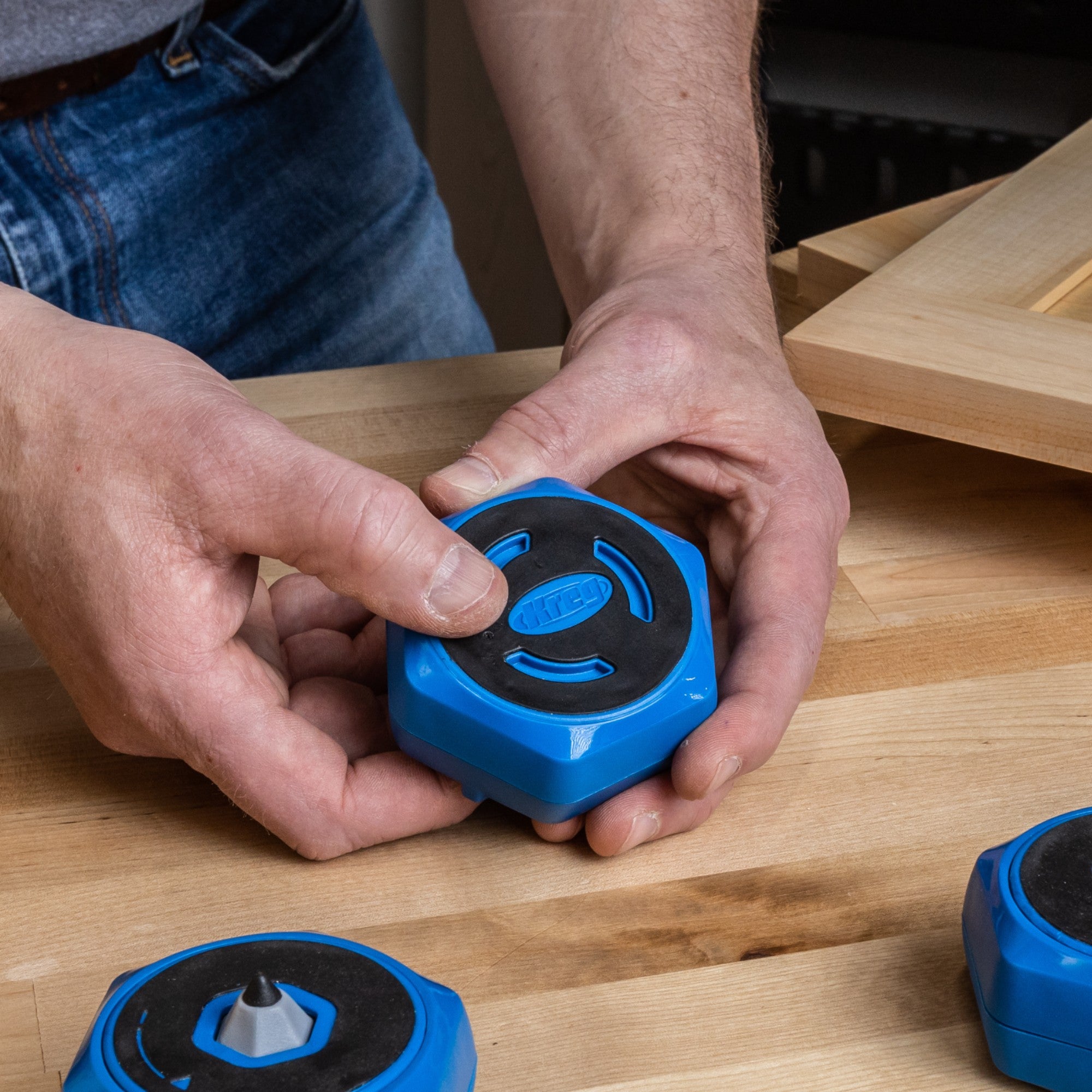 Kreg Anti Rutsch Blöcke Set ( KFS-PUCK ) 4 stabile & rutschfeste Stützen - Arbeitsblöcke mit herausfahrbaren Pins