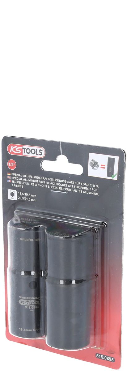 KS TOOLS 1/2" Spezial-Alu-Felgen-Kraft-Stecknuss-Satz für Ford, 18,5 / 19,5 / 20,5 / 21,5 mm, 2-tlg ( 515.0895 )