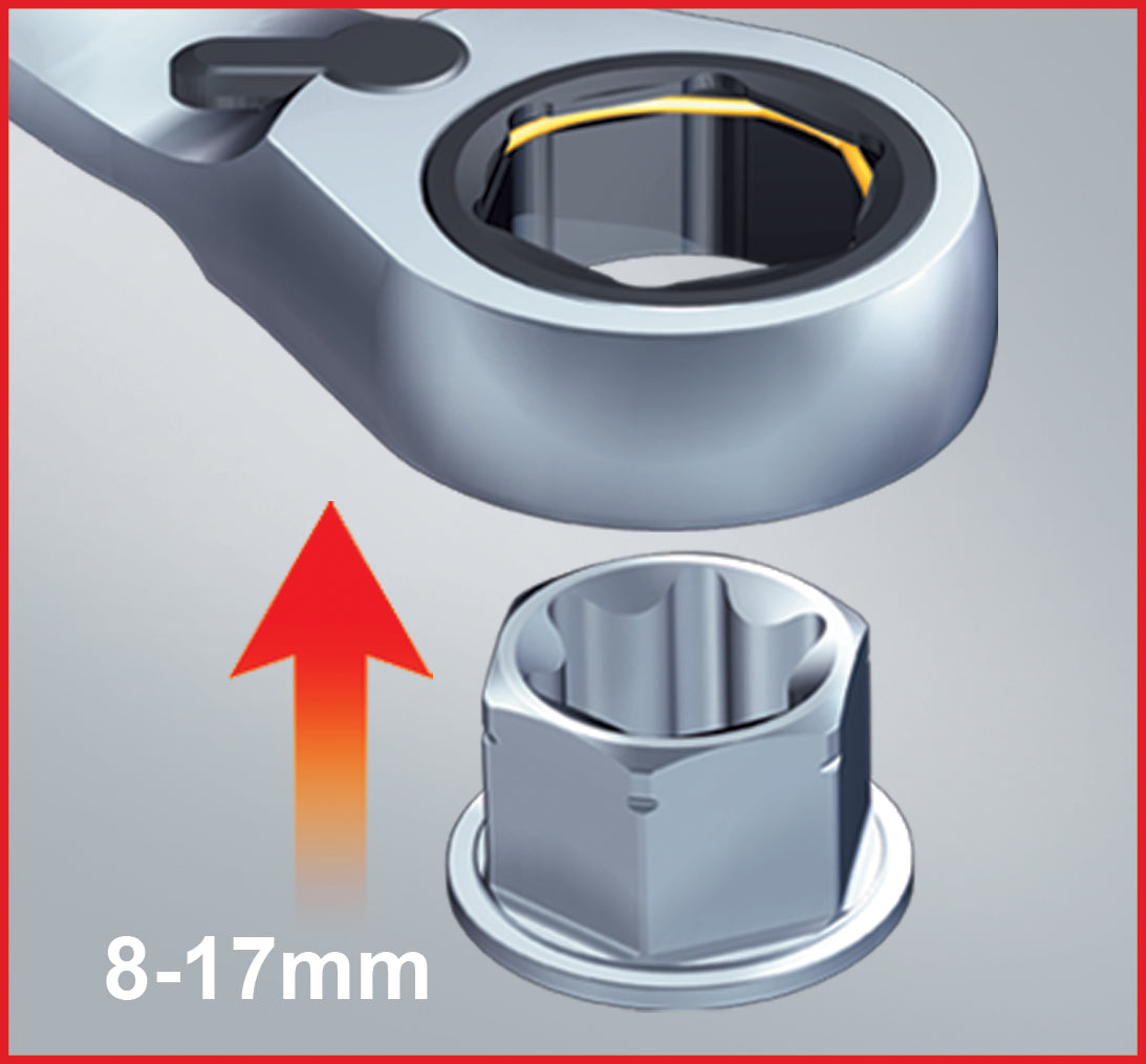 GEARplus Doppel-Ratschenringschlüssel-Satz umschaltbar 10-tlg · GEARplus® Universal-Doppel-Ratschenringschlüssel-Satz, umschaltbar