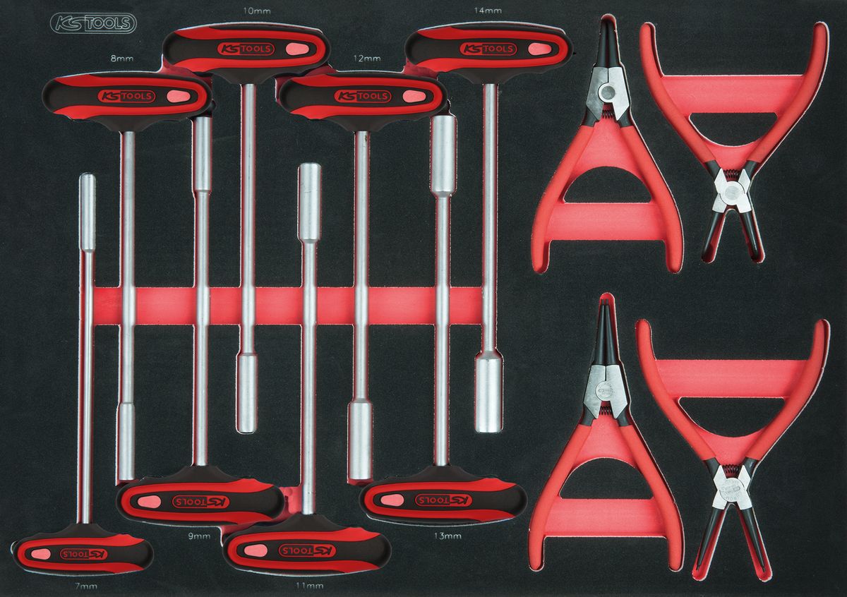 KS TOOLS Sicherungszangen und T-Griff-Satz, 12-tlg, 1/1 Systemeinlage ( 711.0012 )