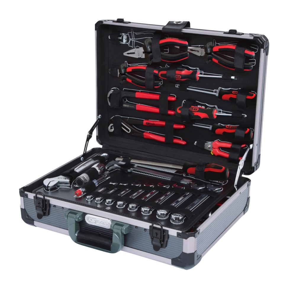 KS Tools presents a set with many different tools for solving various tasks. These tools are made of stainless chrome vanadium steel, which ensures high stability and durability. They are stored in a well-sorted and robust case for easy transportation and storage. KS Tools is a leading manufacturer of high quality hand tools.