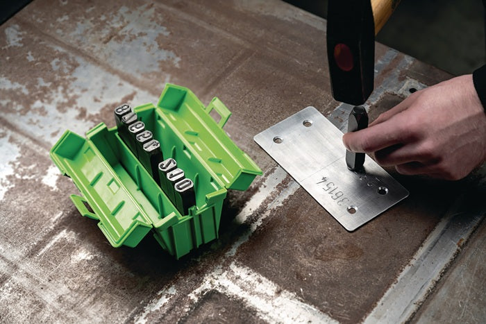 extra heavy quality 9 pieces - for marking workpieces with a strength of up to 1300 N/mm² (42 HRC) - hardness at the engraving: 58-61 HRc - with visible engraving on each punch - machine-engraved - typeface according to DIN 1451 - made of tool steel, nickel-plated surface - in plastic box