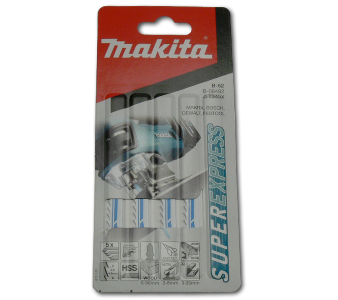Die qualitativ hochwertigen Sägeblätter der Traditionsmarke Makita eignen sich für den Einsatz sohl in Stich- als auch in Pendelhubsägen. Sie sind neben dem Einsatz in Makita - Geräten kompatibel mit Sägen der Marken Bosch, Festool und DeWalt. Die Sägeblätter bestehen aus hochfestem Schnellarbeitsstahl (HSS) und eignen sich für schnelle Schnitte in verschiedensten Materialien (Holz, Kunststoff, Plastik, Weichstahl, Aluminium, Messing).