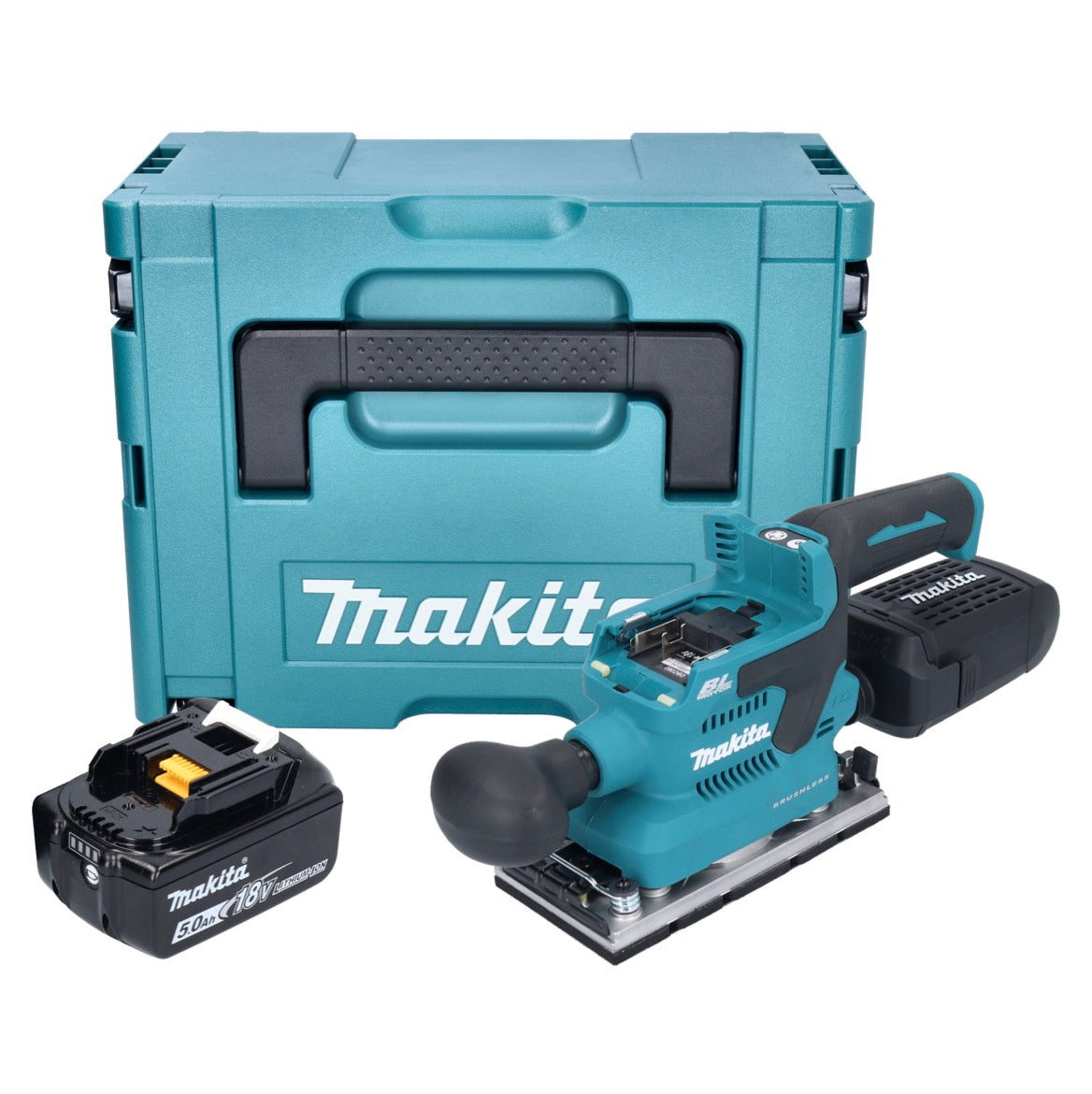 Makita DBO 382 T1J cordless orbital sander 18 V 93 x 185 mm brushless + 1x rechargeable battery 5.0 Ah + Makpac - without charger