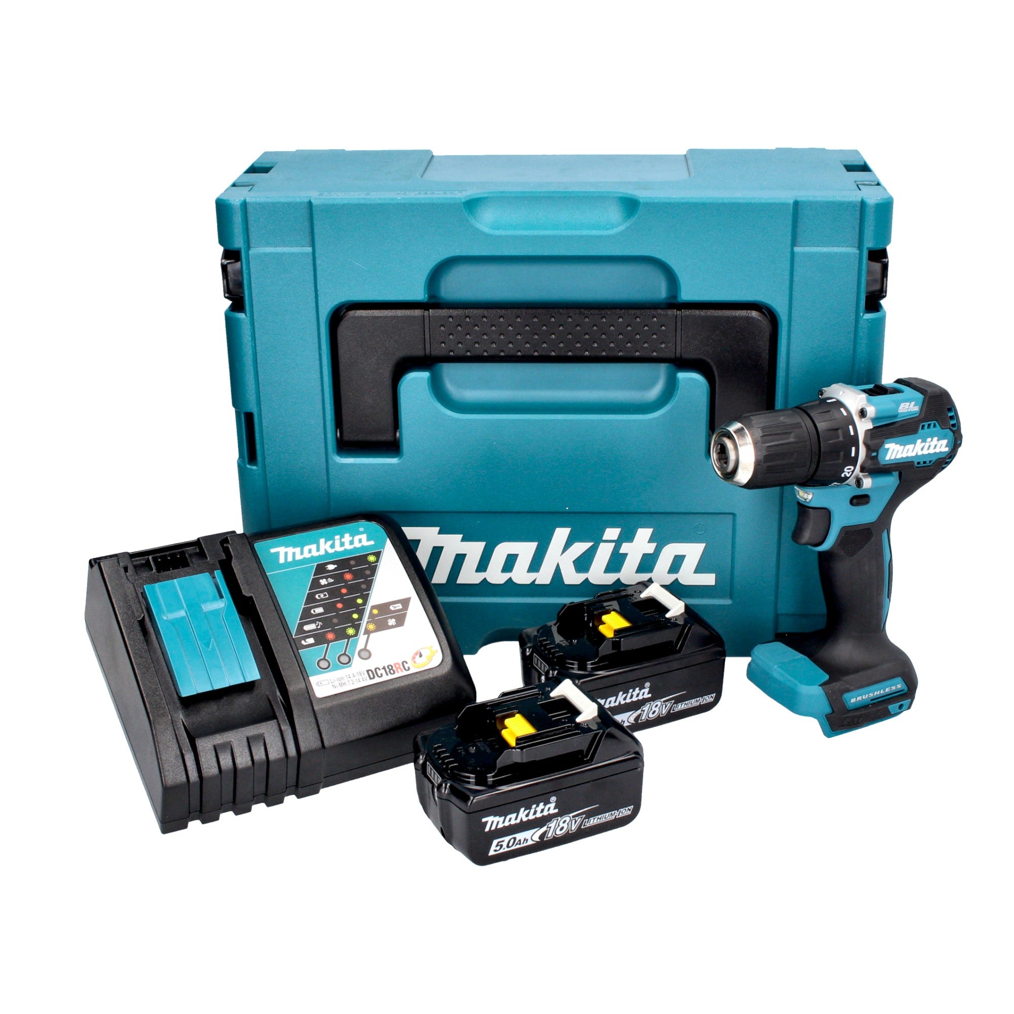 The Makita DDF 487 is a very compact and versatile cordless drill driver. Its compact design makes it the ideal choice for working in hard-to-reach areas. The drill driver is equipped with a 2-speed planetary gearbox with a robust aluminium gearbox housing cover, which ensures easy screwing and drilling. In addition, the DDF 487 has a brushless motor (brushless), a motor brake, right/left rotation and a 13 mm quick-action drill chuck. Another feature is the built-in double LED with afterglow function, which provides good lighting conditions in poorly lit rooms. The ergonomically redesigned handle is intended to minimise damage to health, enabling long working days without significant signs of fatigue. Makita is a leading manufacturer of power tools, high quality workmanship and a huge 18 V programme are among the company's trademarks.