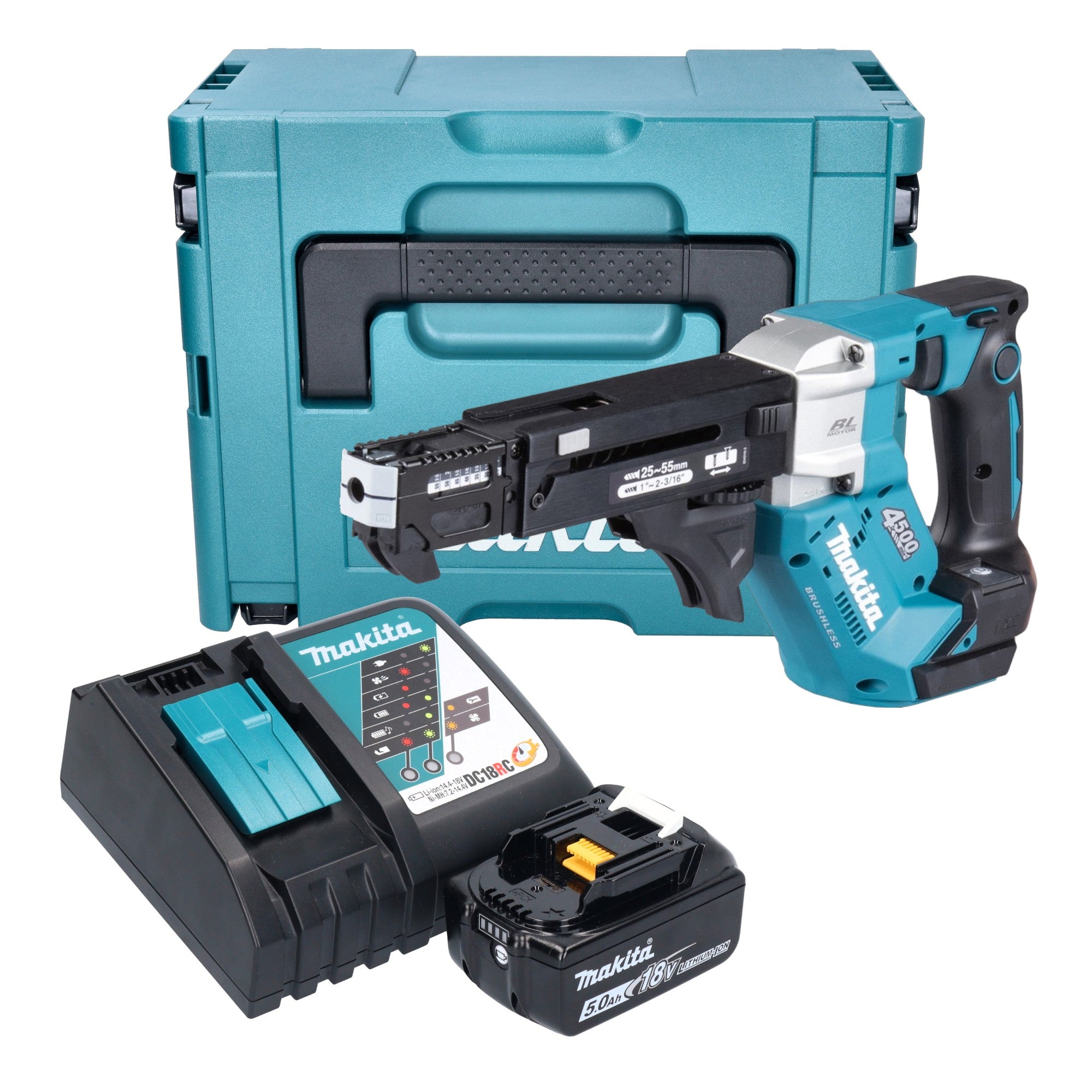 Makita DFR 552 RT1J cordless magazine screwdriver 18 V 25 - 55 mm brushless + 1x 5.0 Ah battery + charger + Makpac