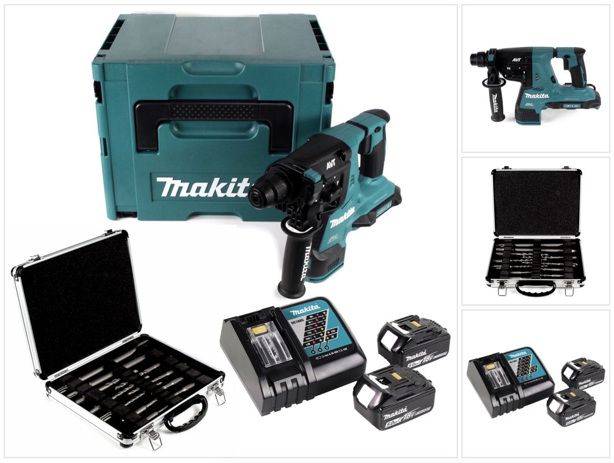 Makita DHR 280 RTJ 2 x 18 V 36 V Li-Ion Akku Bohrhammer 28 mm Brushless für SDS-PLUS im Makpac + 2 x 5,0 Ah Akku + Ladegerät + 11 tlg. Bosch Meißel und Bohrer Set