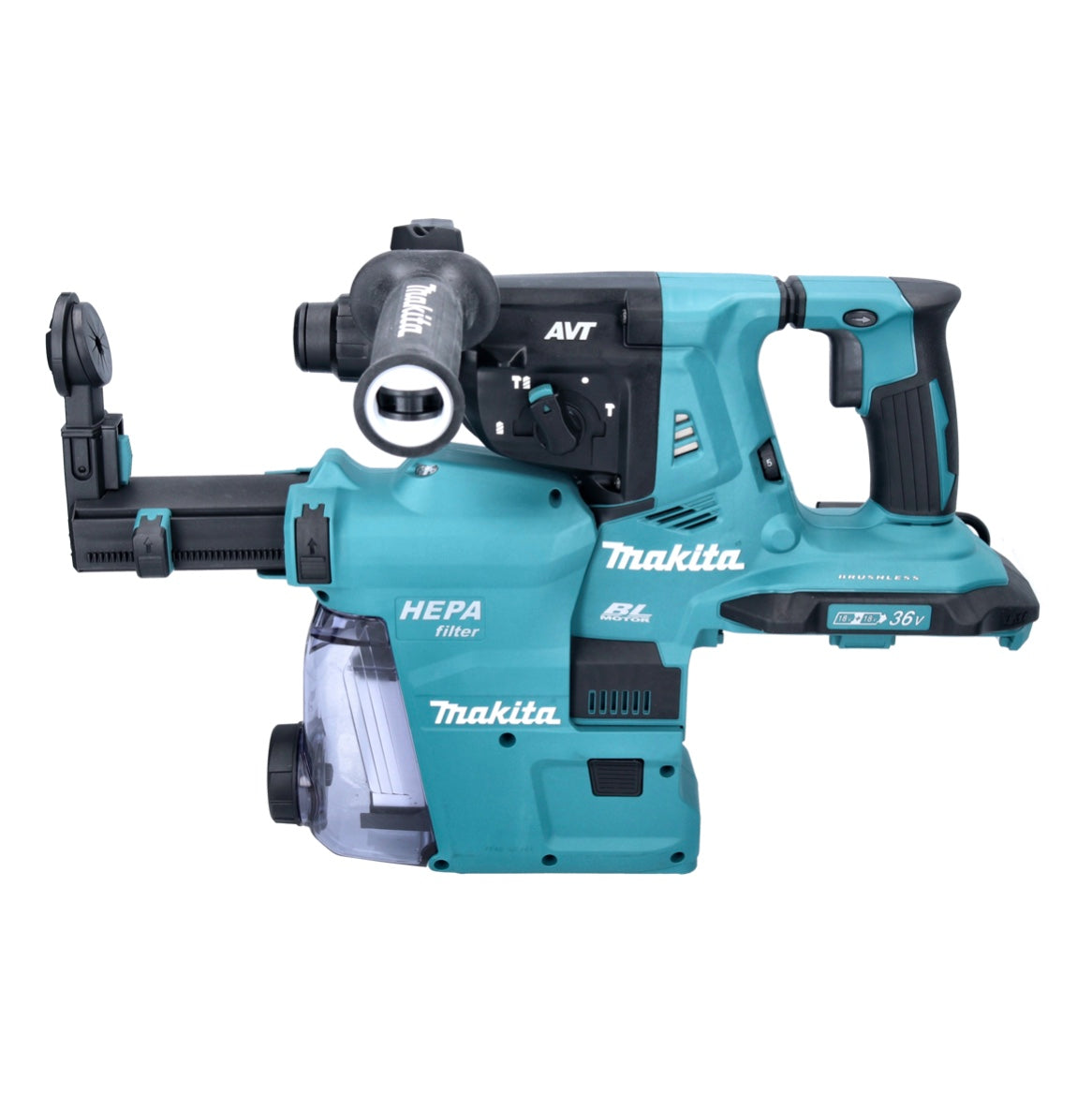 Makita DHR 280 RTWJ Akku Bohrhammer 36 V ( 2x 18 V ) 2,8 J SDS Plus Brushless + 2x Akku 5,0 Ah + Ladegerät + DX08 Staubabsaugung + Makpac