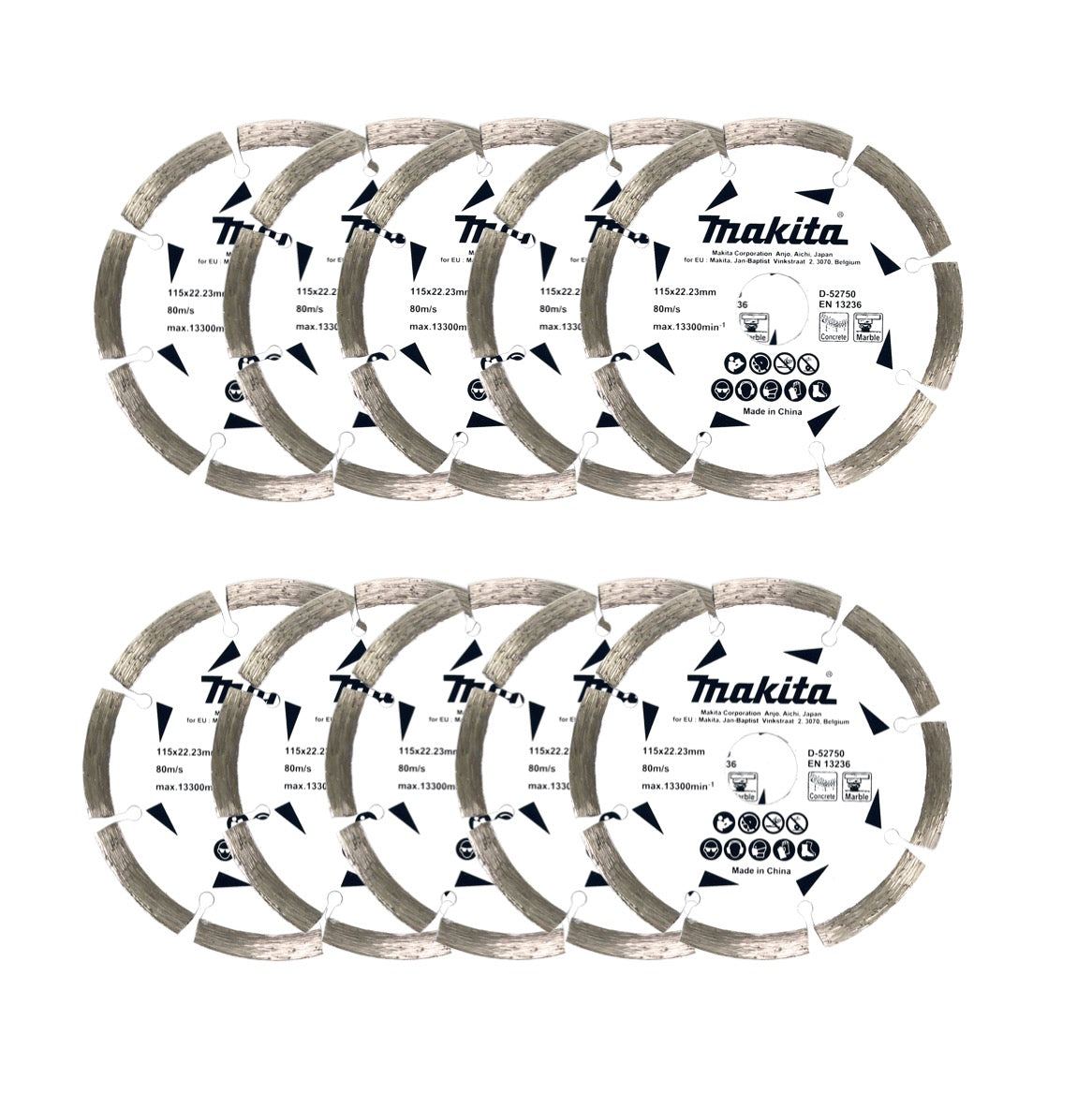 Makita Diamant Trennscheibe für Beton und Gestein 115 x 22,23 mm 10 er Pack D-52750