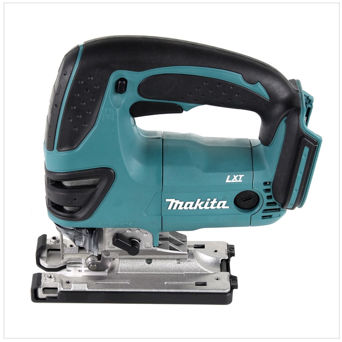 The robust Makita DJV 180 jigsaw impresses with its low noise level and infinitely variable stroke rate. The tool has an integrated bright LED lamp and excellent vibration damping. The device also has an aluminium base plate that can be tilted up to 45° and the saw blades can be changed quickly, easily and without tools.
