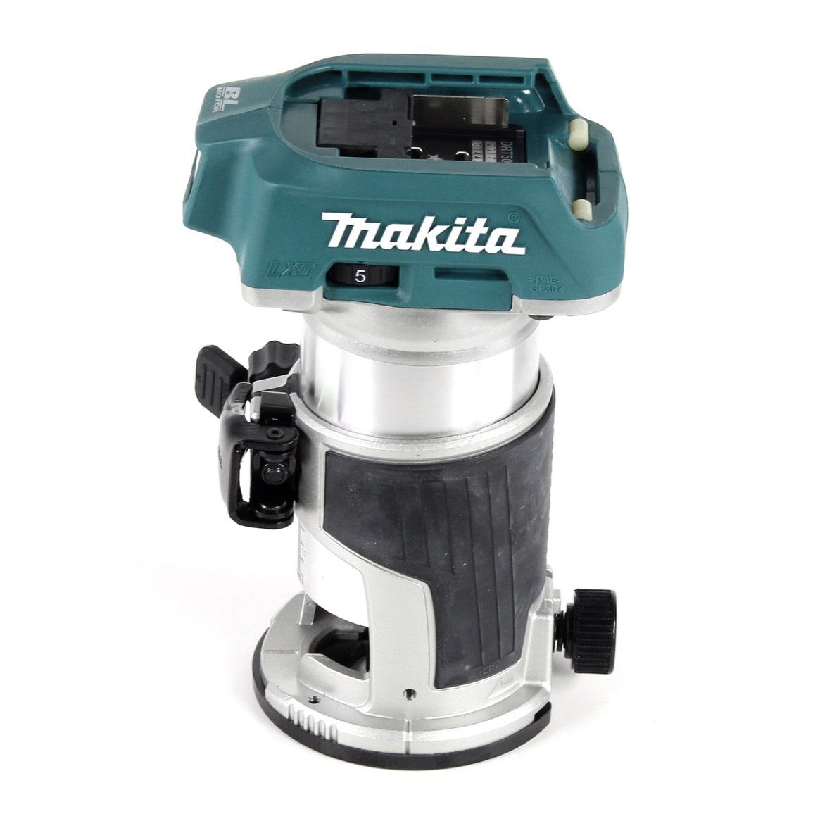 Das Werkzeug ist zum Bündigfräsen und Profildrehen von Holz, Kunststoff und ähnlichen Materialien vorgesehen. Die Makita DRT 50 ist eine kompakte und handliche Kantenfräse. Das Gerät überzeugt durch seine Soft-Start-Funktion, welche ein kontrolliertes Starten ermöglicht, sowie seine variablen Geschwindigkeitsstufen, welche über einen Drehregler eingestellt werden können. Der bürstenlose Motor sorgt für eine effizientere Nutzung der Akkukapazität und erhöht die Laufzeit und Haltbarkeit des Geräts. Die Fräse enthält einen Staubsaugeranschluss zum anhängen eines Staubsaugers und verschiedene Aufsätze für unterschiedliche Anwendungen. Mit Konstantelektronik und Sanftanlauf. Die Tiefeneinstellung ist präzise mit Skalierung möglich. Das Gehäuse ist sehr stabil und besteht aus Aluminium.