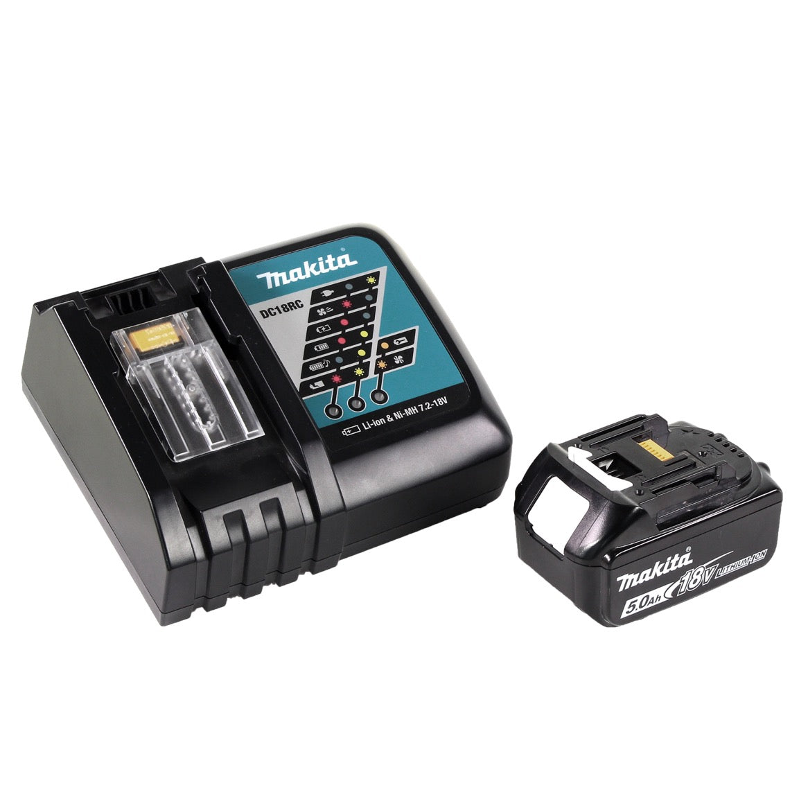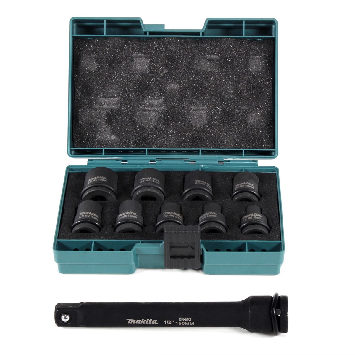 Makita DTW 190 RT1 18V Akku Schlagschrauber 190Nm 1/2" + 1x Akku 5,0Ah + Schnellladegerät + 9 tlg. Stecknuss-Set + Verlängerung 150mm