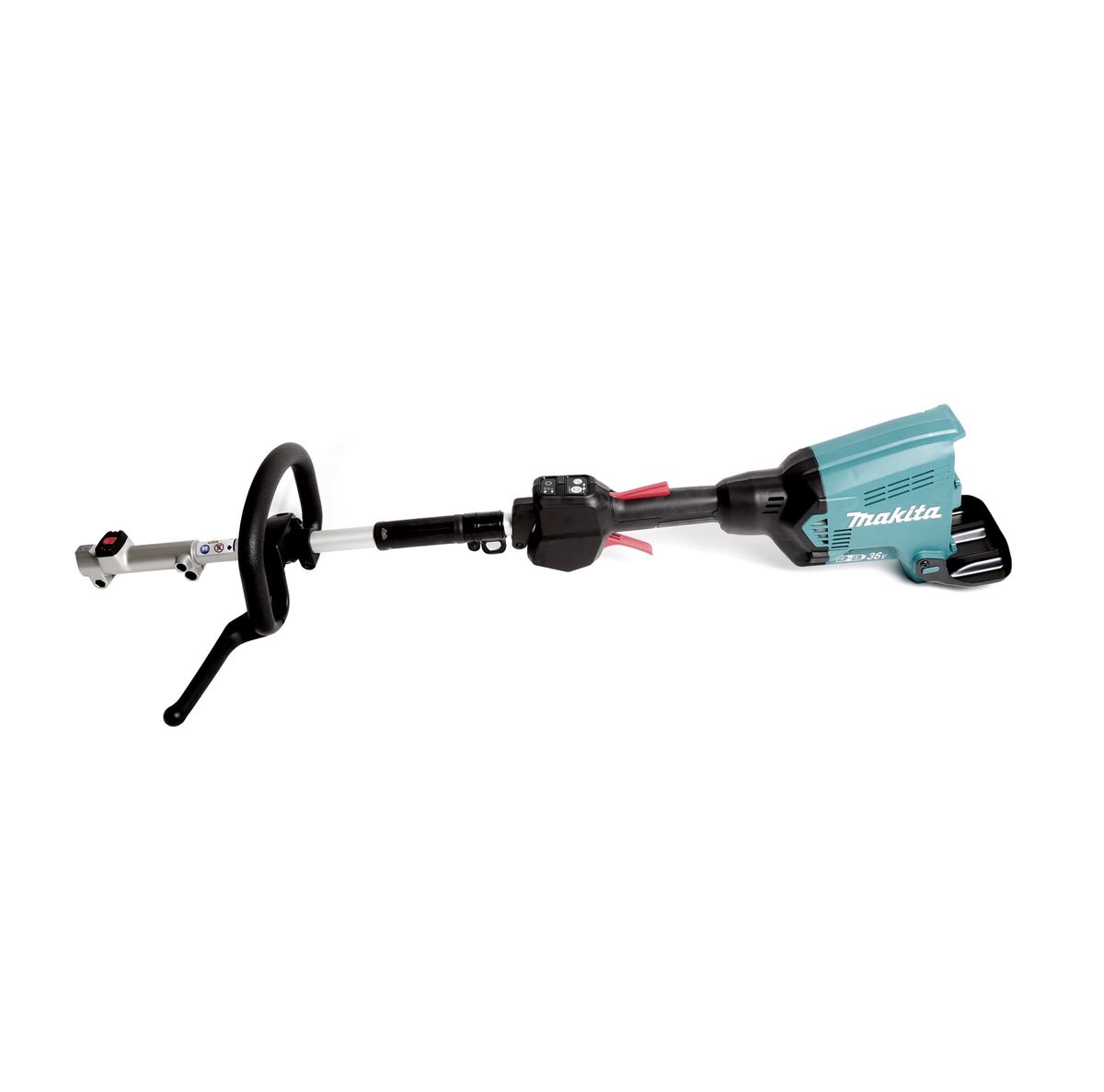 The multi function power head from Makita is suitable for driving approved attachments, such as hedge trimmer, cultivator or high pruning attachment. The tool is environmentally friendly and very powerful. The cost efficiency is unbeatable, you only need the right attachment and not a multitude of tools. It is equipped with two 18-volt batteries (not included in the scope of delivery), which provide the tool with an extremely high level of power. It is recommended to always use two identical batteries. This multi-function power head also features the latest Xtreme Protect Technology (XTP), which provides optimum protection against dust and splash water. Its high-performance motor features Active Feedback Sensing Technology, which stops the tool immediately when blocked. Its three-stage electronic speed control is designed for all tasks. Its reversing rotation direction system enables the removal of grass cuttings. The height-adjustable round handle on the unit of this device can be individually adjusted to suit body size, attachments and current working conditions. Its shoulder strap included in the scope of delivery enables effortless work. All attachments can be changed completely without tools. The attachment, in combination with an approved drive, is intended exclusively for trimming bushes and hedges.