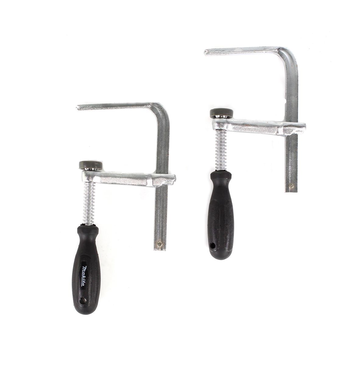 Die Makita Führungsschiene ermöglicht ein optimales Arbeiten und ist geeignet für Tauchsägen, Handkreissägen und Fräsen: Gefertigt aus einer extrudierten Aluminiumkonstruktion ist die Führungsschiene ideal für den Einsatz mit verschiedenen Materialien. Sie besitzt einen austauschbaren Splitterschutz, ist rutschfest und mit den oberen Laufstreifen kombinierbar für größere Längen. Der Splitterschutz ist transparent und somit nicht auf der Führungsschiene zu erkennen. Durch die Makita Führungsschienenverbinder ist ein passgenaues Verbinden von zwei oder mehreren Schienen problemlos möglich. Die Führungsschienenverbinder verschwinden komplett in der Führungsschiene, sodass die Maschine störungsfrei darüber gleiten kann. Ein sicherer und fester Halt wird durch das Verschrauben der Führungsschienenverbinder in der Führungsschiene gewährleistet. Diese Schraubzwingen von Makita sind besonders robust und langlebig gebaut. Sie bestehen aus Ganzstahl und sind leistungsstark und ideal für Makita Führungsschienen und Tauchsägen geeignet. Die Ausladung beträgt 100 mm und die Spannweite 185 mm.