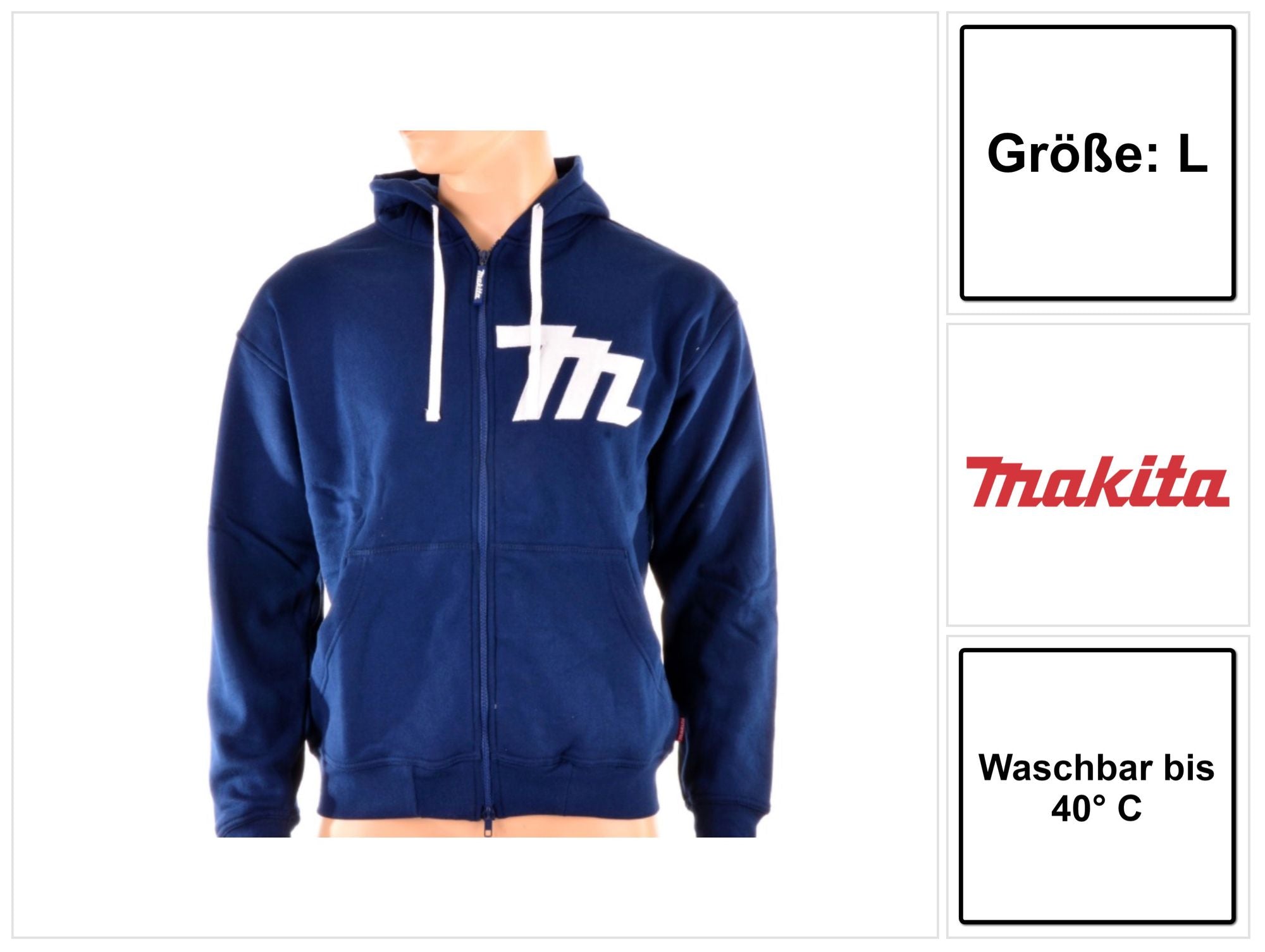 Makita Hoodie mit Reißverschluss Größe L ( 98P145 ) Farbe Blau