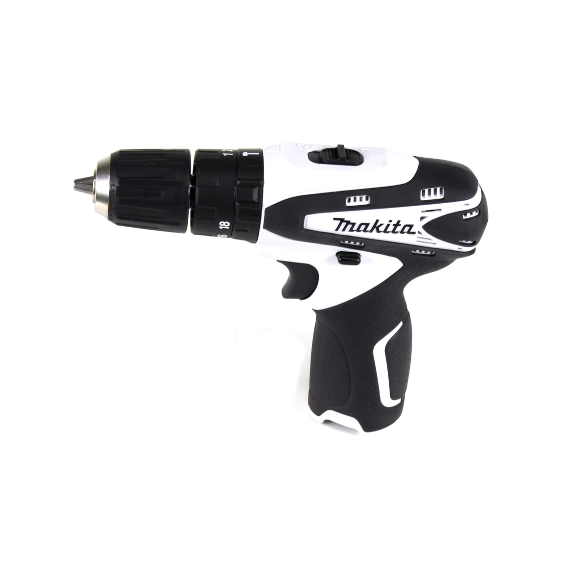 Der kraftvolle HP 330 DZW Akku Bohrschrauber von Makita besticht durch seine kompakte Bauform und gleichzeitig hoher Leistung. Er verfügt über ein zwei-Gang-Getriebe, 18-stufige Drehzahlregulierung und ein abschaltbares Schlagwerk. Zur optimalen Ausleuchtung der Werkstücke ist eine LED-Arbeitslampe mit Nachglimmfunktion angebracht. Dank des ergonomischen und gummierten Griffes und der kleinen, handlichen Bauform liegt der Bohrschrauber ideal in der Hand.