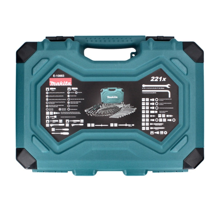 Makita Werkzeug Set 221 tlg. Chrom Vanadium Stahl ( E-10883 ) Bit / Ringmaulschlüssel / Steckschlüssel / Schraubendreher / Ratsche