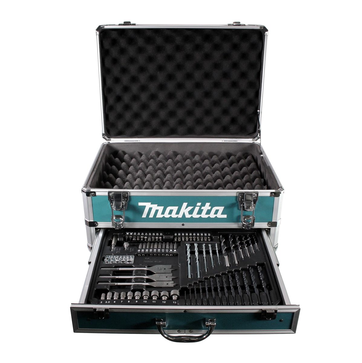 Makita X4 Alu Werkzeug Schubladen Koffer mit Universaleinlage + 70 tlg. Bit Bohrer Set