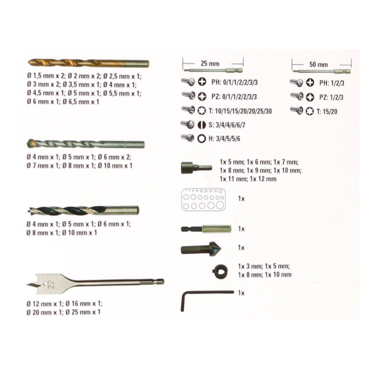 - 7x PH Bit 25 mm ( 1x PH0 / 2x PH1 / 2x PH2 / 2x PH3 )