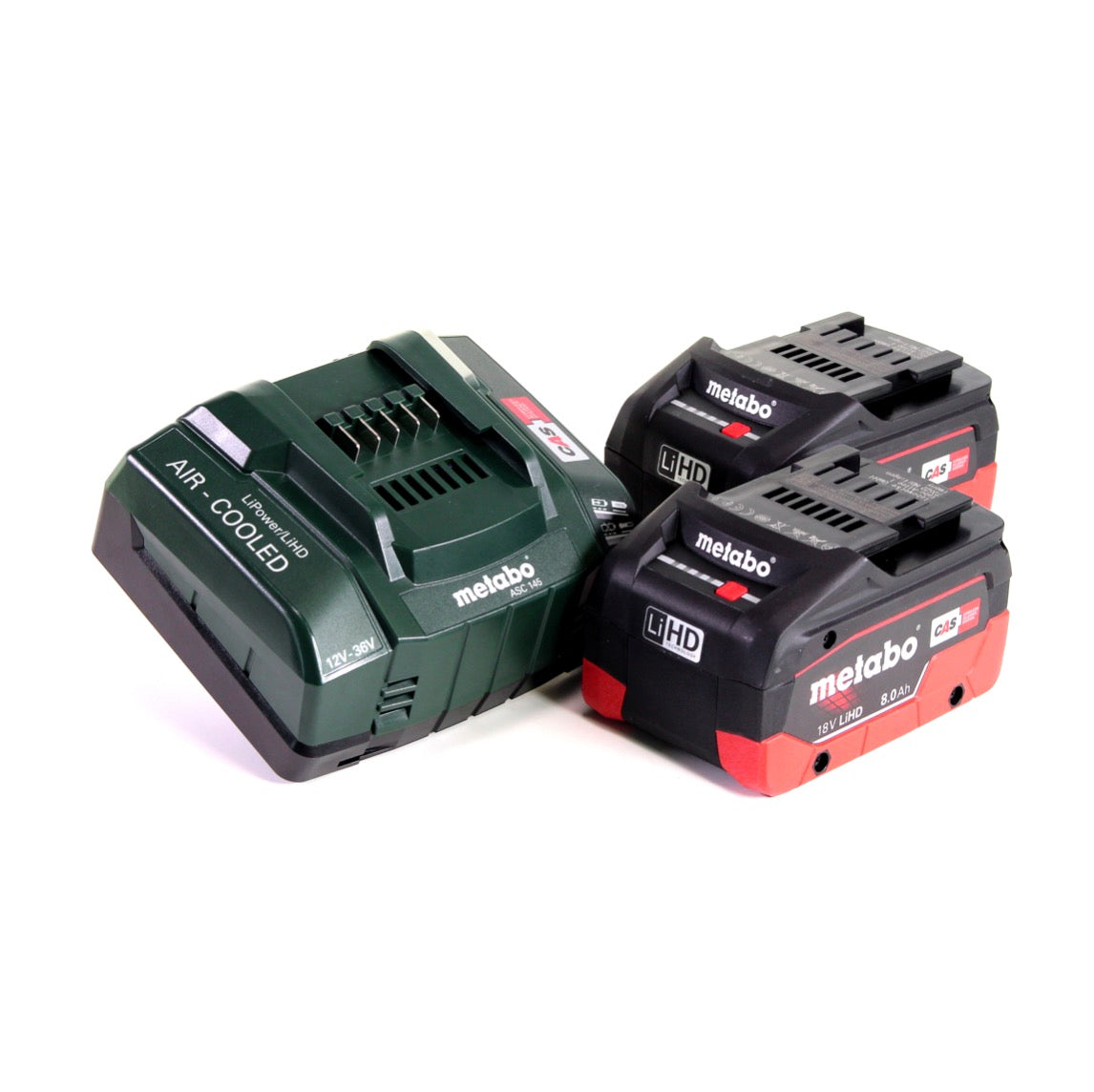 Der Metabo KHA 18 LTX Akku Kombihammer hat 3 Funktionen. Man kann mit ihm Hammerbohren, Bohren und Meißeln. Die integrierte Vario (V)-Elektronik vereinfacht die Arbeit mit materialgerechten Drehzahlen. Die Metabo S-automatic Sicherheitskupplung sorgt für mechanisches Entkoppeln des Antriebs beim Blockieren des Bohrers um sicher zu Arbeiten. Das LED-Arbeitslicht lässt die Sicht optimal auf die Bohrstelle scheinen. Das LiHD 8,0 Ah Akkupack eignet sich für ultimative Leistung und bei extrem langer Anwendung bei minimaler Temperaturenentwicklung. Zusätzlich enthält es eine Patentierte "AIR COOLED"-Ladetechnologie und eine Permanente elektronische Einzelzellenüberwachung (ESCP) beim Laden, für besonders lange Lebensdauer. Die integrierte Kapazitätsanzeige sorgt für permanente Kontrolle des Füllzustands. Der Akku ist 100% kompatibel zu allen 18 V-Maschinen und Ladegeräten. Partner: Rothenberger, Edding, Fischer, Mafell, Collomix, Eibenstock, Eisenblättert, Haaga, Starmix, Steine, Rokamat, Birchmeier macht den Akku zu einem Akku für alles. Das Ladegerät ist zum Aufladen aller Li-Ion und LiHD Schiebesitz-Akkupacks (12V-36V) mit angepasstem Akku-Ladestrom von Metabo geeignet. Die patentierte AIR COOLED Akkukühlung sorgt beim Laden für deutlich reduzierte Ladezeiten. Das ASC 145 besticht durch eine sehr geringe Stand-by Aufnahmeleistung. Ein intelligentes prozessorgesteuertes Lademanagement sichert das schonende Laden und maximale Anzahl der Ladezyklen. Es handelt sich bei diesem Zubehör um ein Folgemodell des ASC 30-36 ( 685132000 ). Der besondere Vorteil dieses Ladegeräts ist seine Eignung zum Aufladen aller Akkupacks der CAS (Cordless Alliance System) Partner: Rothenberger, Edding, Fischer, Mafell, Collomix, Eibenstock, Eisenblättert, Haaga, Starmix, Steine, Rokamat, Birchmeier.  Ein Ladegerät für alles.