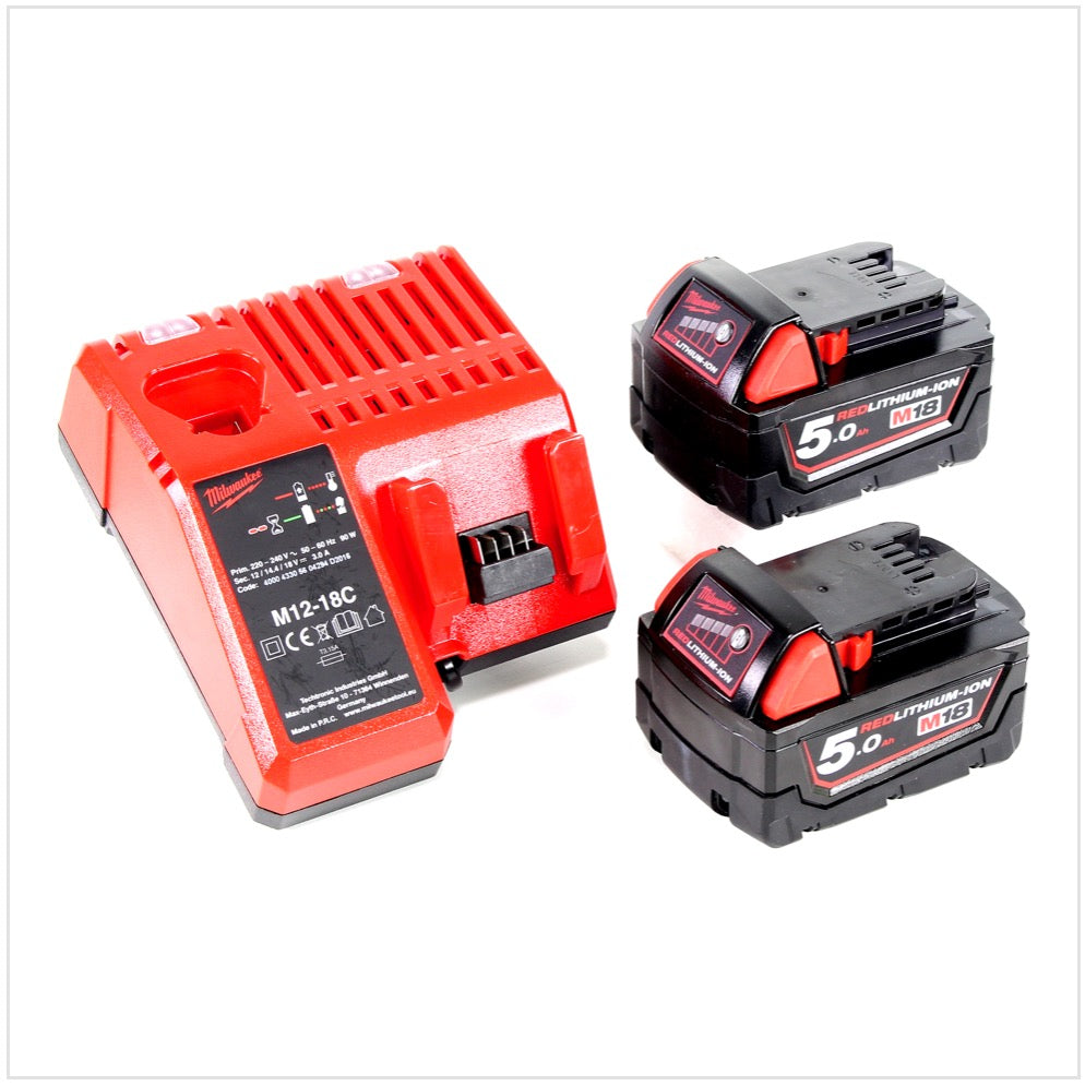 Milwaukee M18 BMT - 502 18 V Akku Multi Funktion Werkzeug in Stanley Box + 2x M18 B5 5,0 Ah Akku + M12-18C Ladegerät