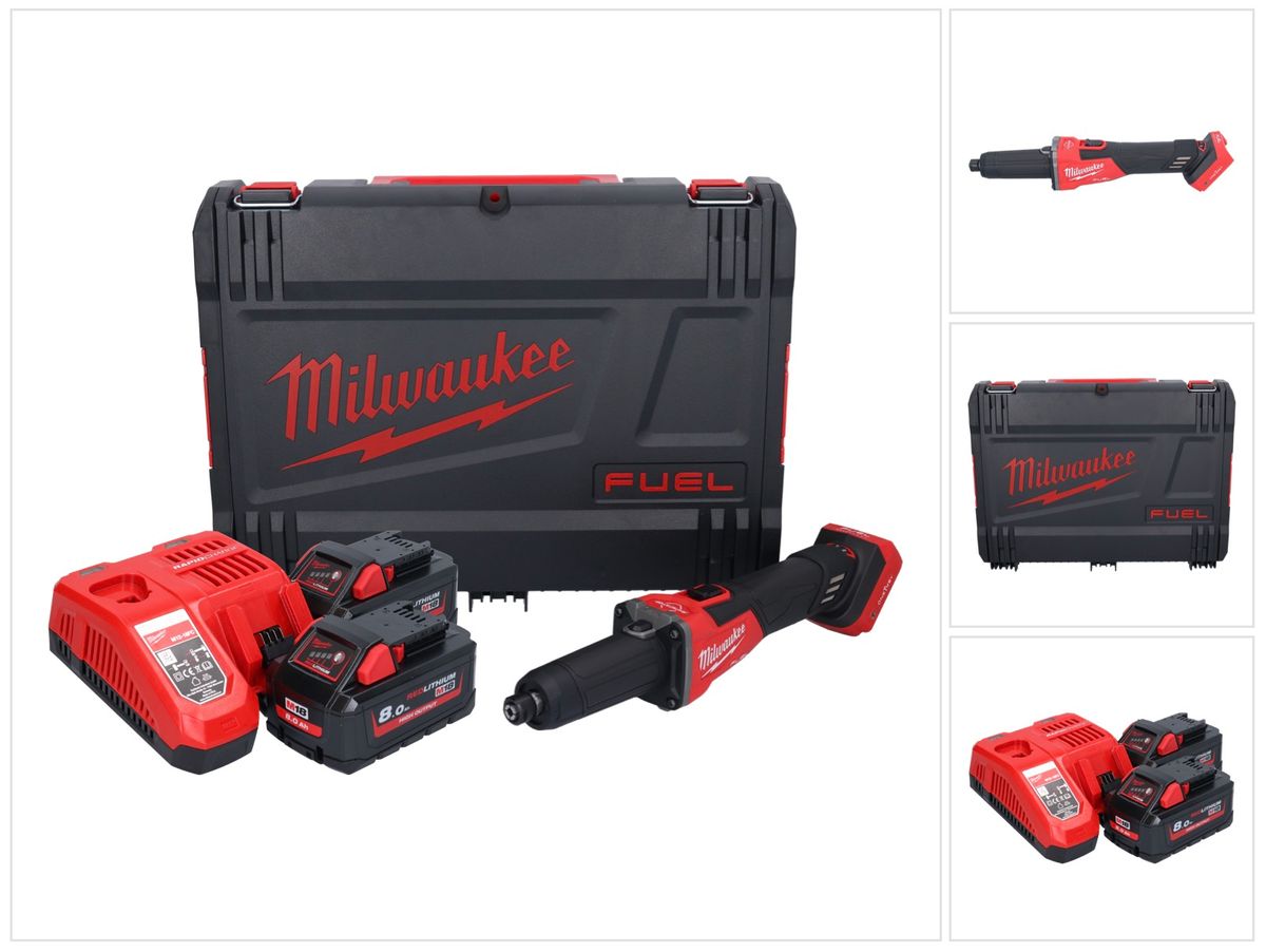 Milwaukee M18 FDGROVB-802X Akku Geradschleifer 18 V Brushless + 2x Akku 8,0 Ah + Ladegerät + HD Box