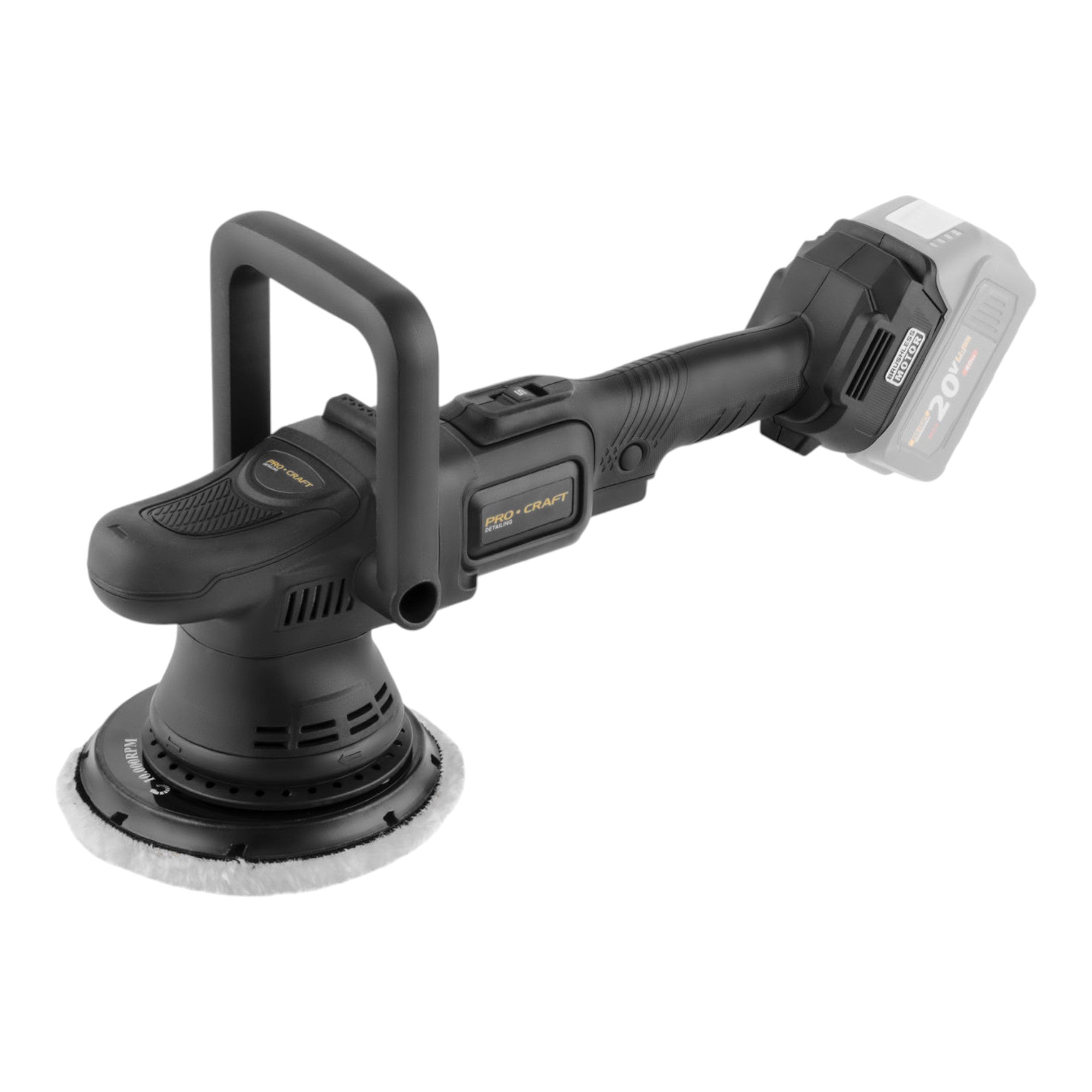 Die Procraft PM22bb ist eine leistungsstarke Akku-Exzenterpoliermaschine für die Finish-Bearbeitung von Oberflächen, das Polieren lackierter Karosserieteile, die Aufbereitung matter/oxidierter Lacke sowie zum Auftragen von Wachsen und Polituren. Der bürstenlose Motor sorgt für effizienten Betrieb, stabile Leistung und eine lange Lebensdauer. Dank Drehzahlregelung von 2.500–4.800 min⁻¹ lässt sich die Geschwindigkeit optimal an Material, Polierpad und Poliermittel anpassen. Der Soft-Start ermöglicht einen ruhigen, kontrollierten Anlauf ohne Ruckeln. Die exzentrische (orbitale) Bewegung reduziert das Risiko von Hologrammen bzw. Lackschäden – ideal auch für Einsteiger im Detailing.